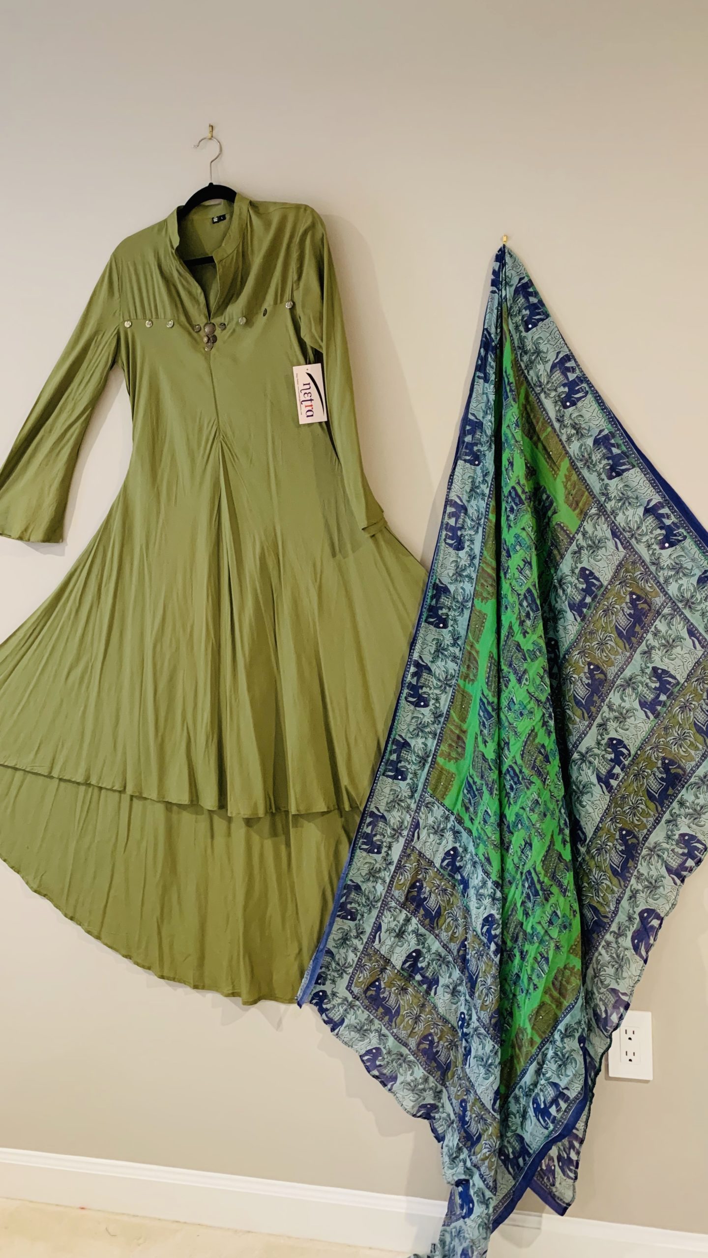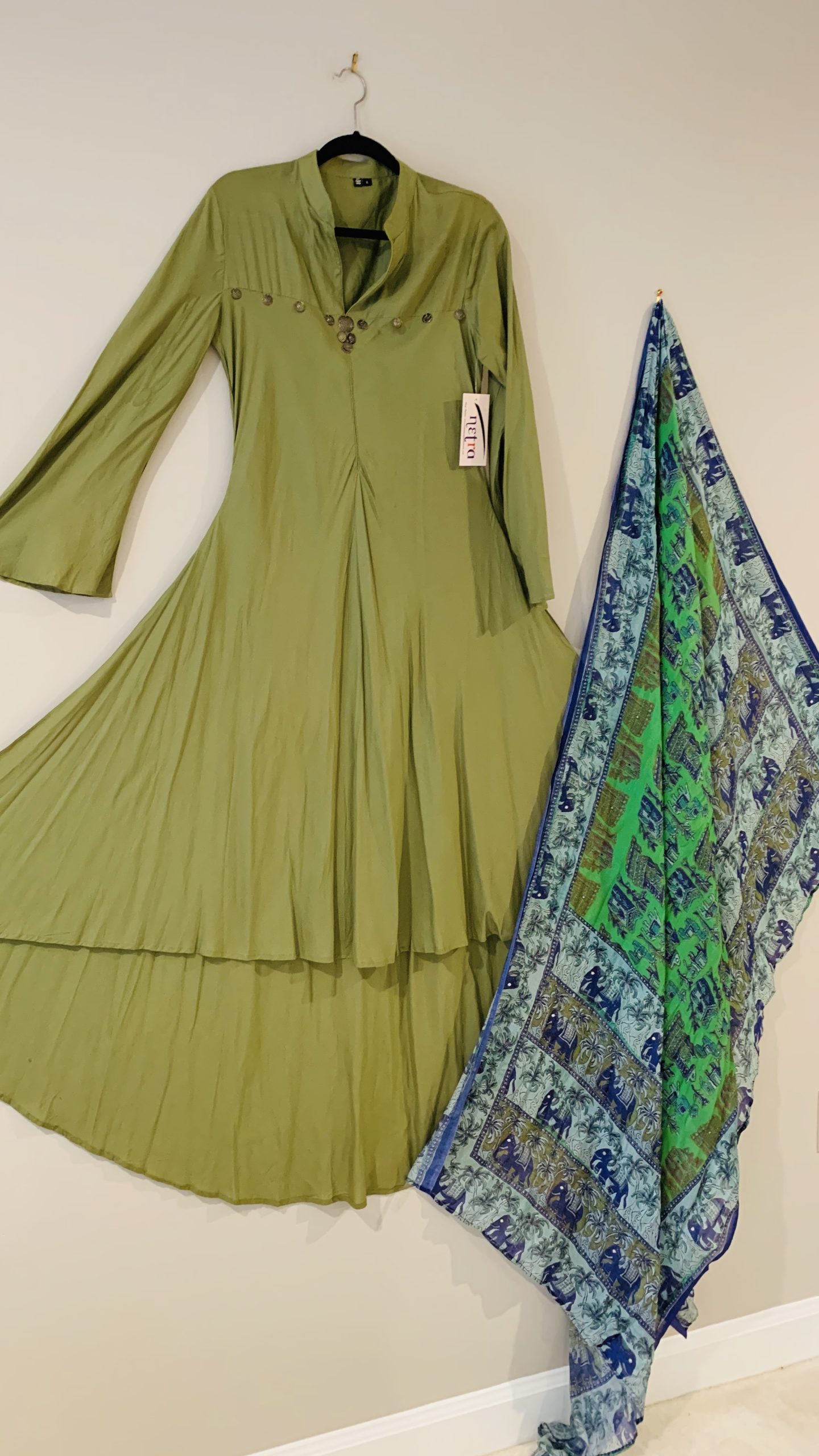 Components: Two pc outfit. Maxi dress and digital printed stole