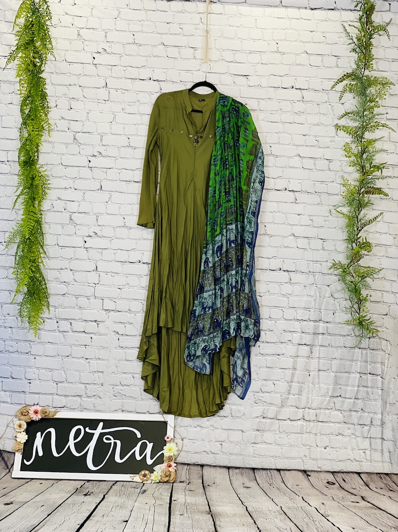 Asymmetric hi low style hand embroidered Long Outfit Size 40 Large