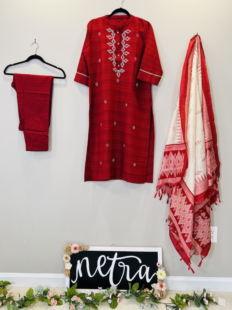Beautiful embroidered Top, Dupatta and Bottom Set Size 44