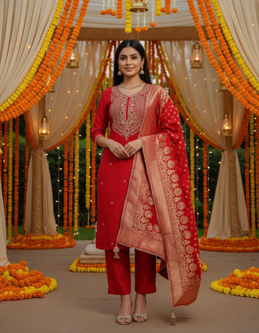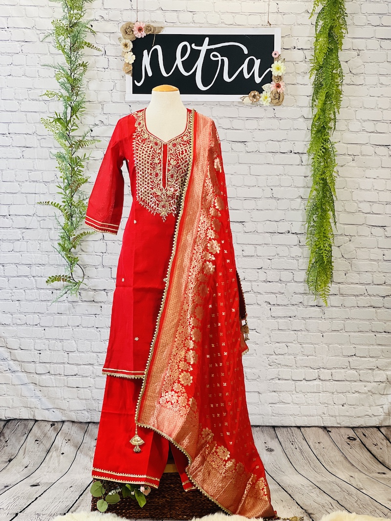 Beautiful gota embroidered kurta set with machine embroidery details Size 40