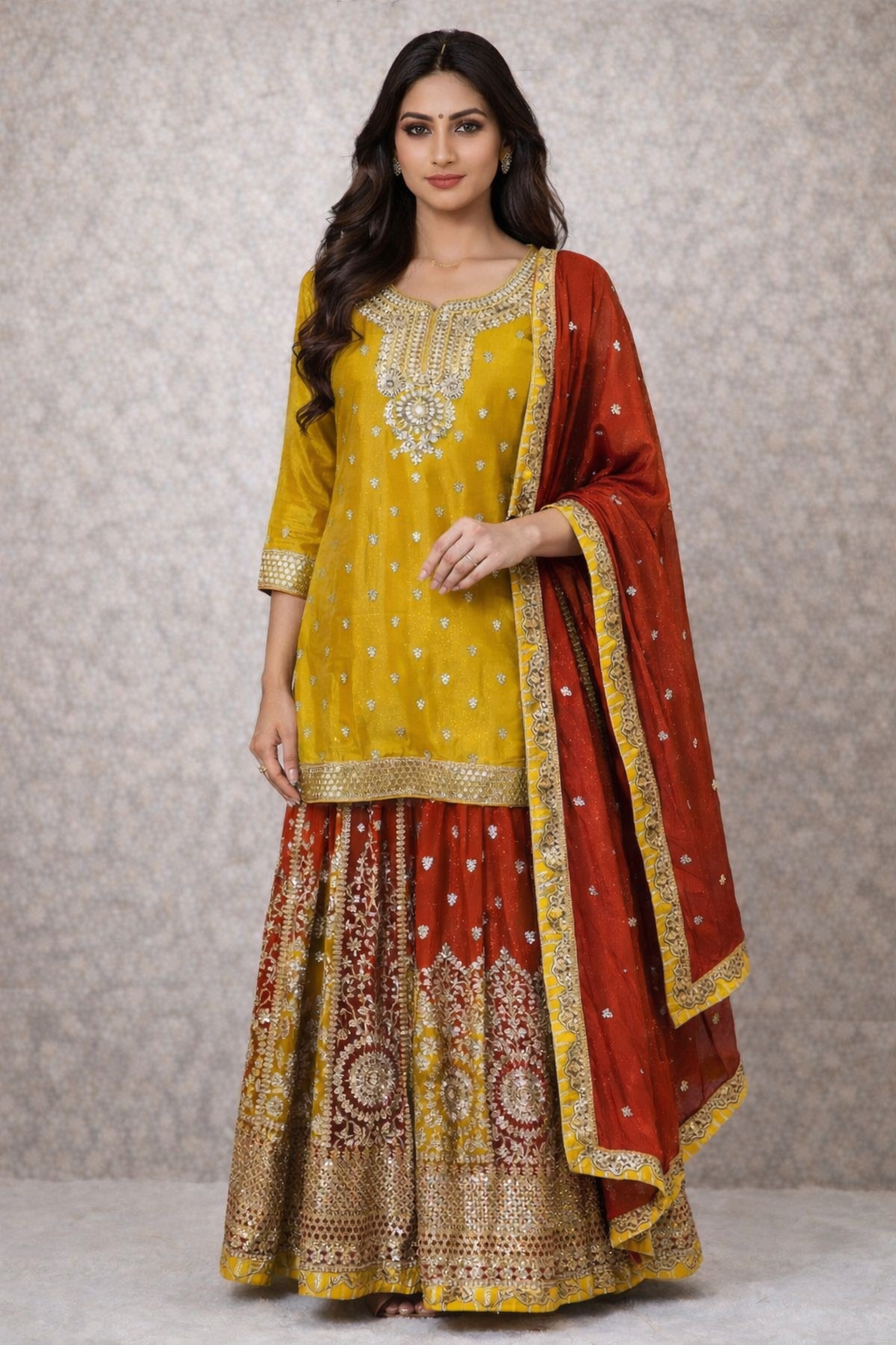 Beautiful Gota work Kurta skirt and Dupatta suit Size 40