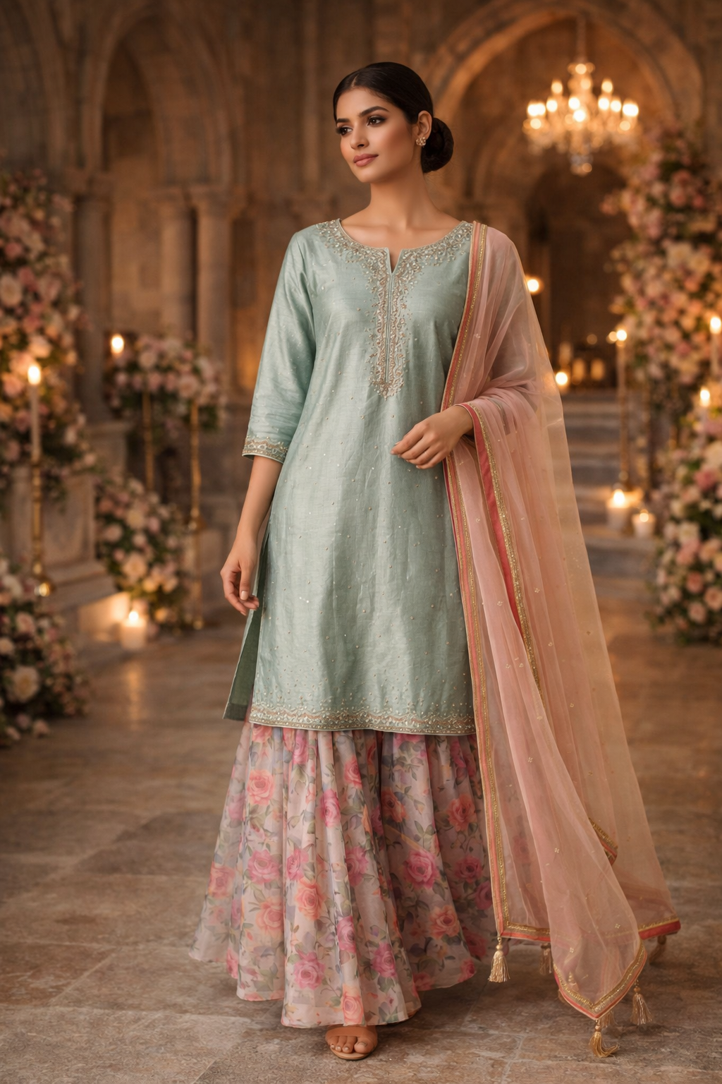 Beautiful hand embroidered Kurta and Gharara set Size 40