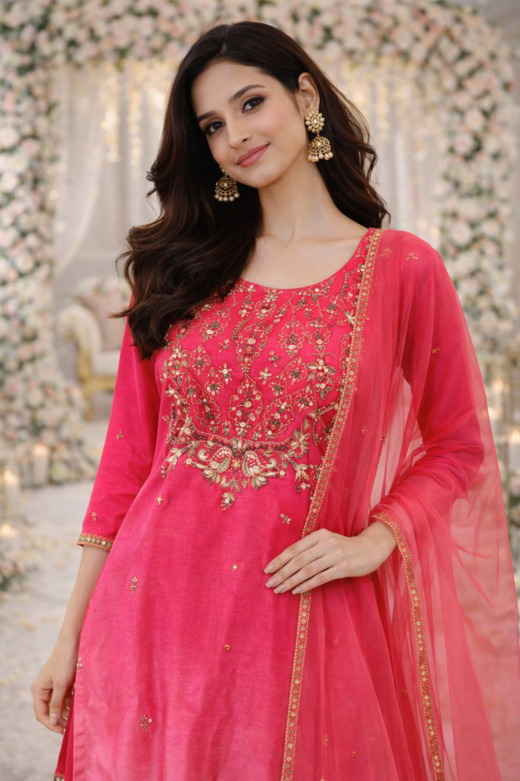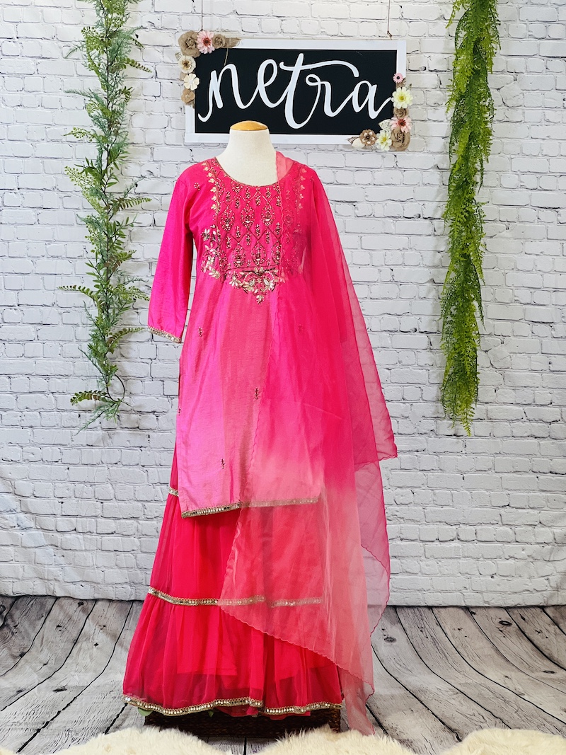 Beautiful hand embroidered ombre silk kurta set with dupatta Size 42