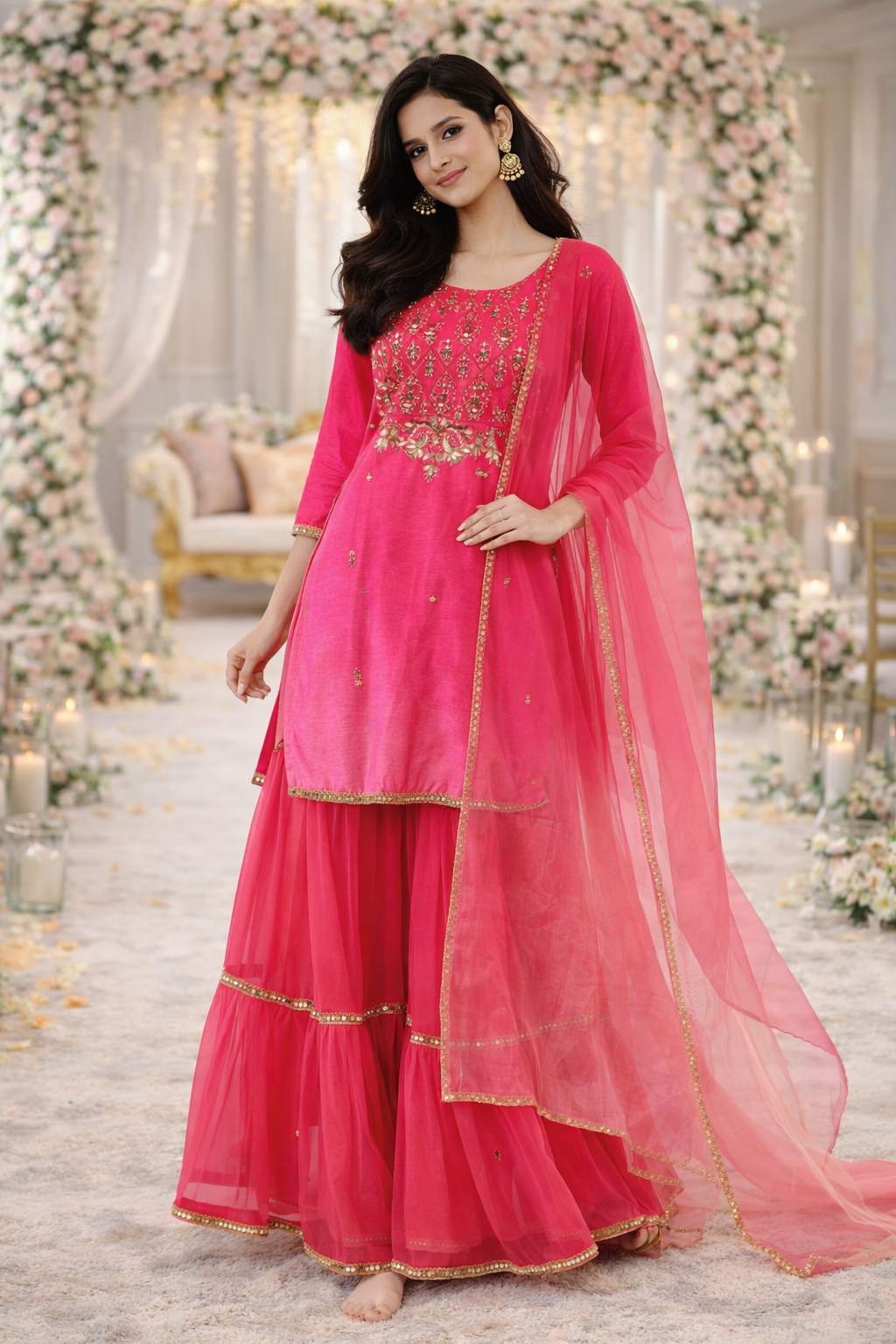 Beautiful hand embroidered ombre silk kurta set with dupatta Size 42