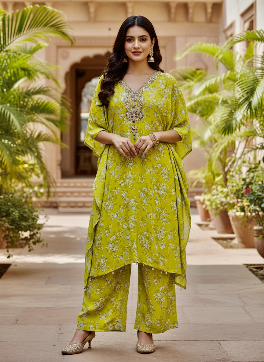 Beautiful Indowestern kaftan set with gota embroidery details Size 38