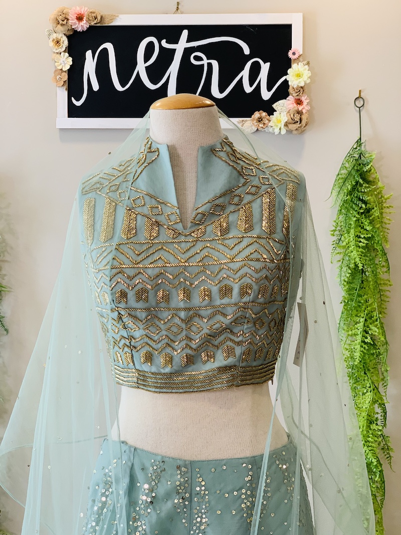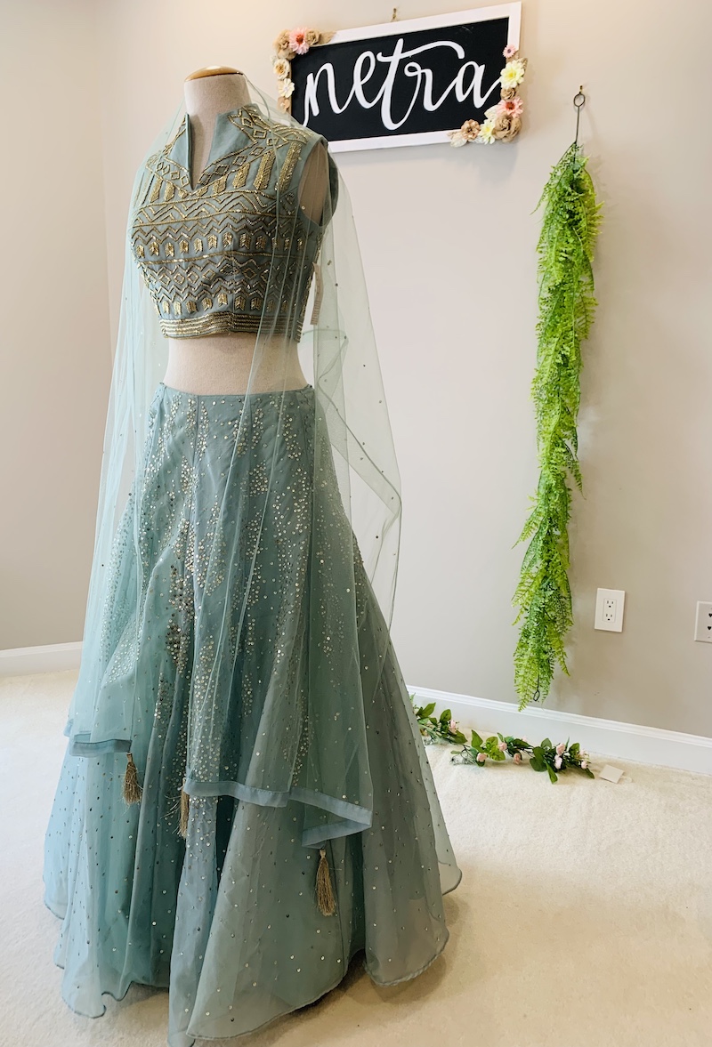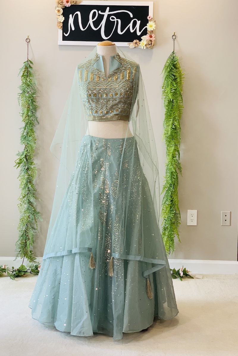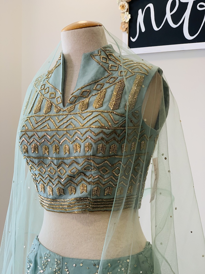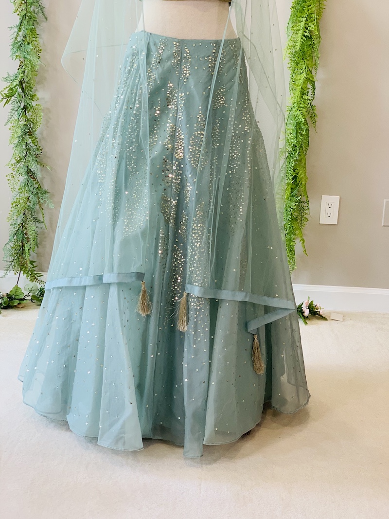 Beautiful katdana and sequence embroidered Lehenga, Choli, and Dupatta Set. Please see the description for additional product details. Any question feel free to drop us an email.
