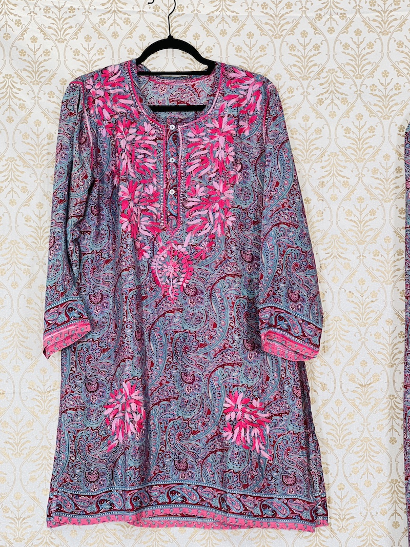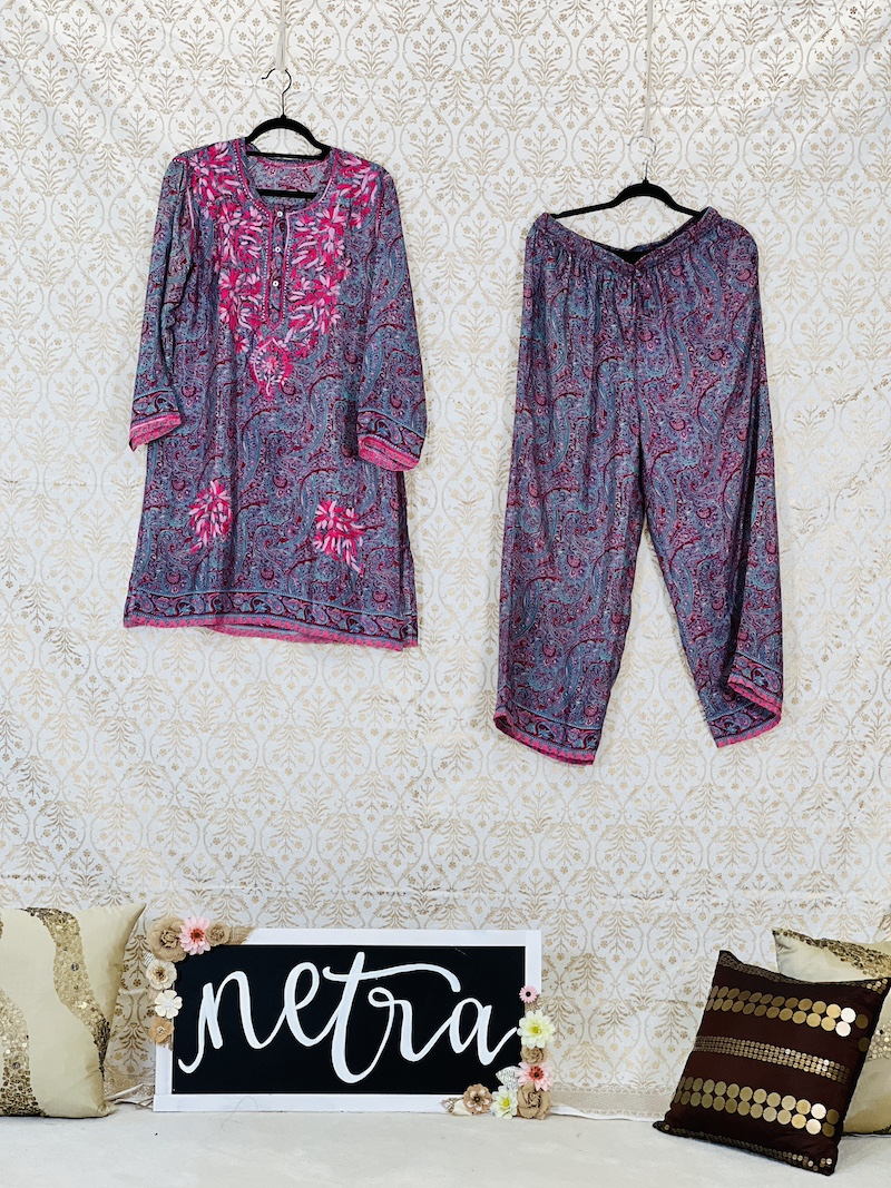 Beautiful Lucknowi Co ord Set in crepe fabric Size 40 Large. Hand embroidered and skillfully stitched by the artisans in Lucknow India.