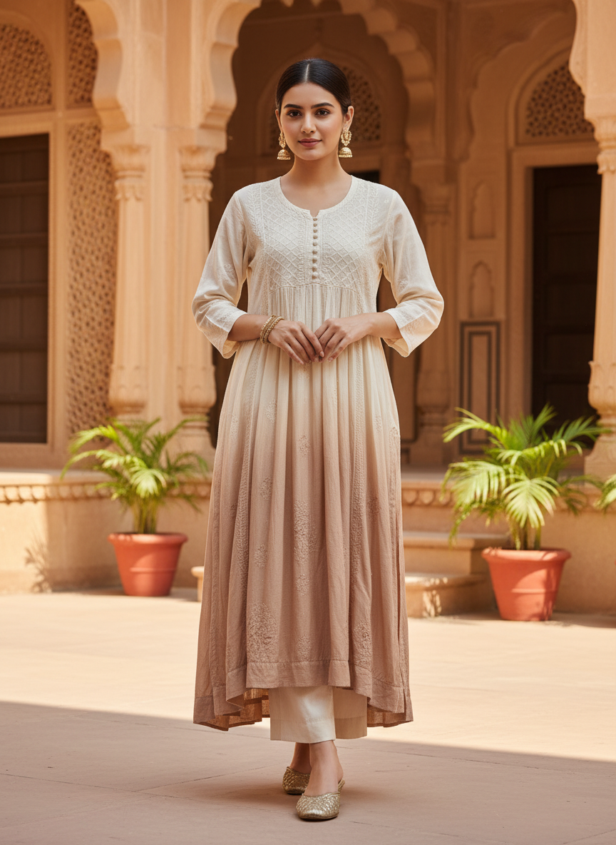 Beautiful Lucknowi dress in muslin Size 44 2XL . and embroidered and skillfully stitched by the artisans in Lucknow India.