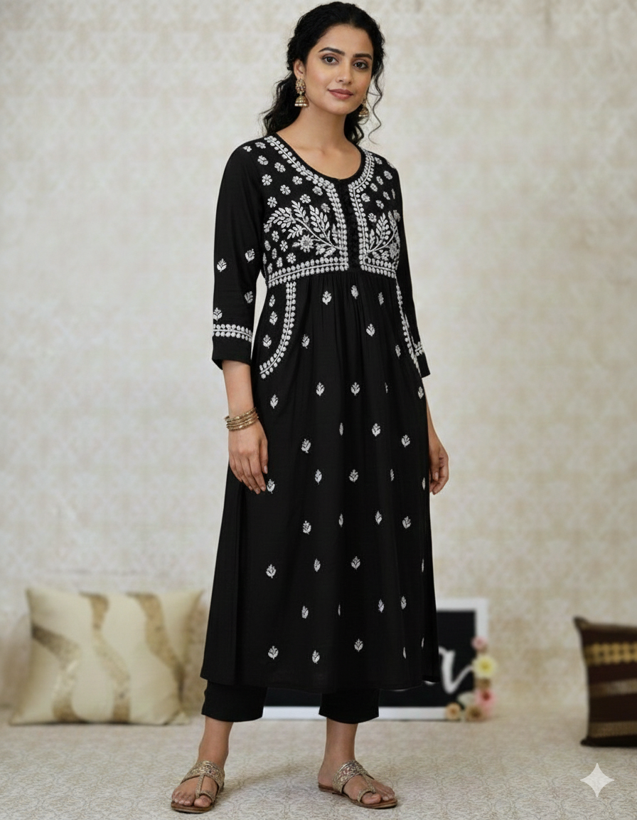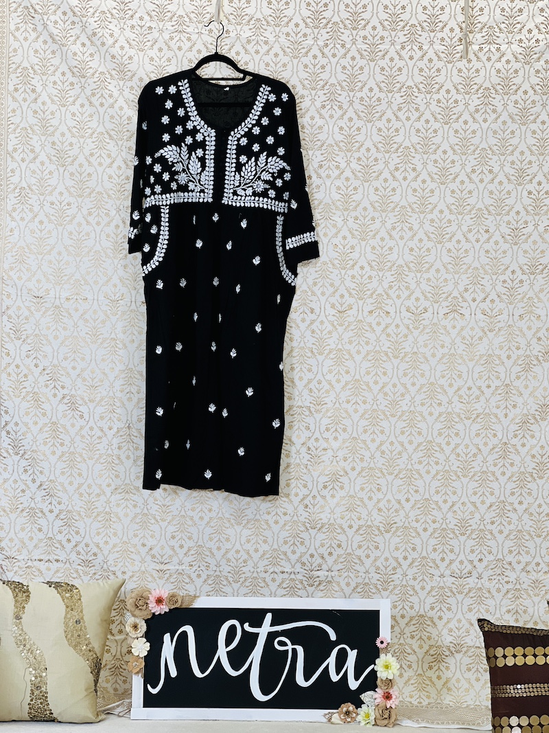 Beautiful Lucknowi dress Size 46 3XL. Made on soft mulmul fabric. Hand embroidered and skillfully stitched by the artisans in Lucknow India.