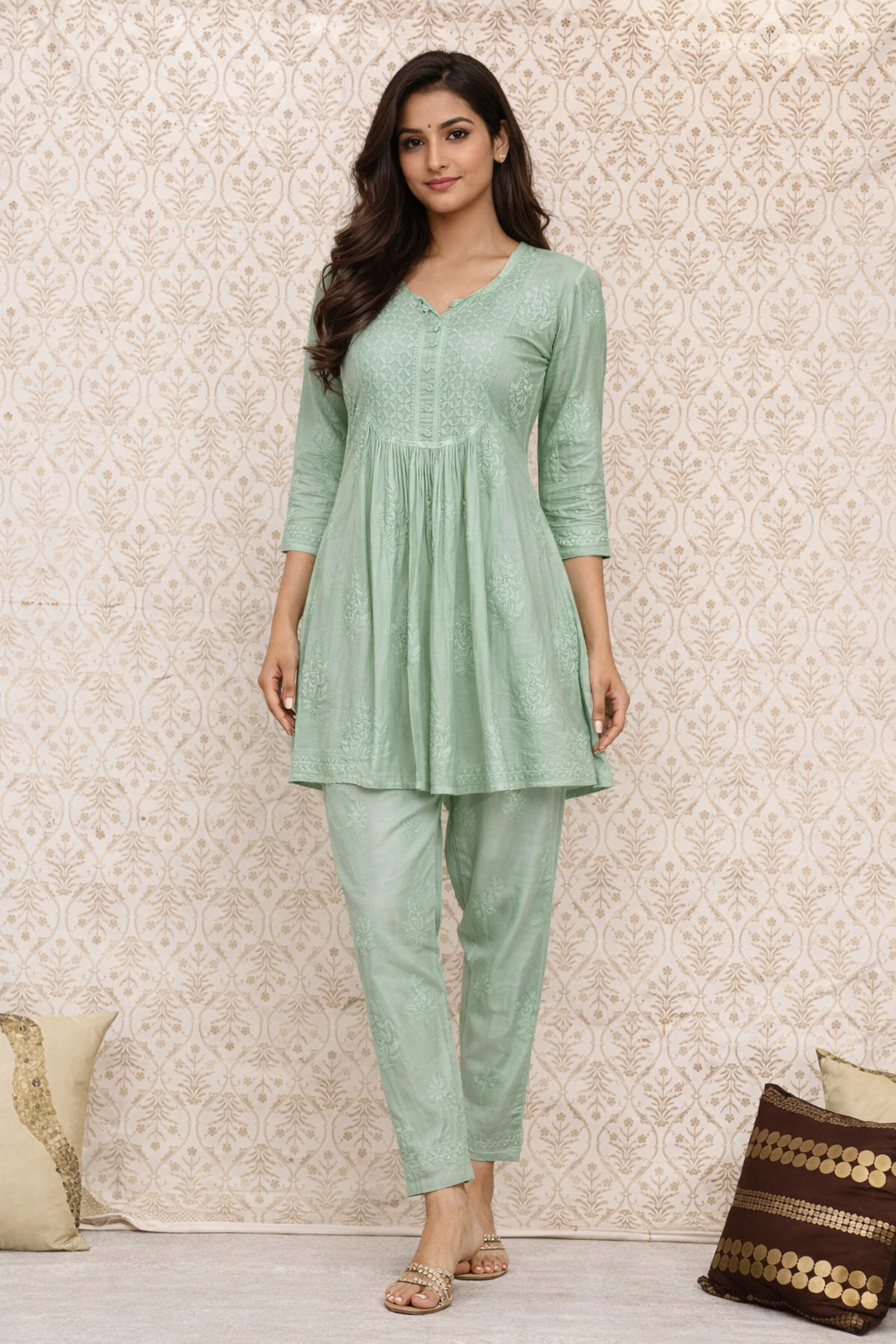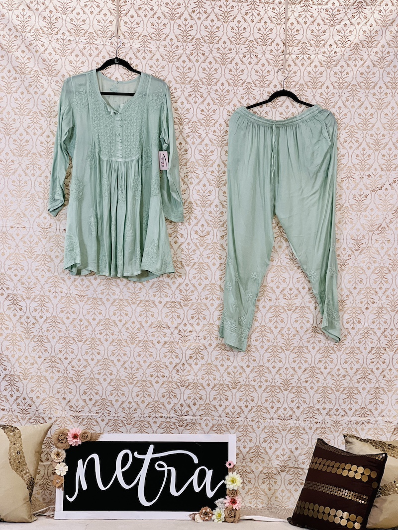 Beautiful Lucknowi Co Ord Set Size 42 XLarge . Hand embroidered and skillfully stitched by the artisans in Lucknow India.