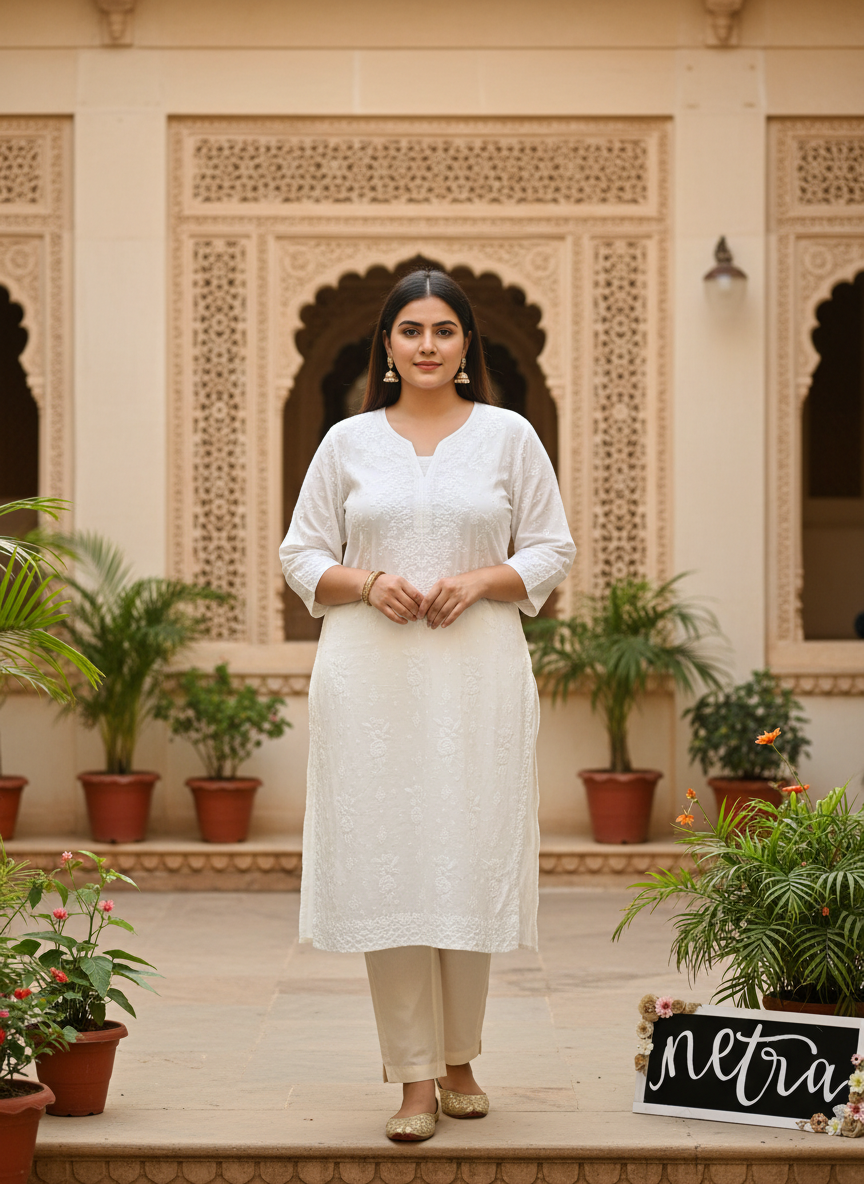 Beautiful Lucknowi Kurta size 42 XL . Hand embroidered and skillfully stitched by the artisans in Lucknow India.