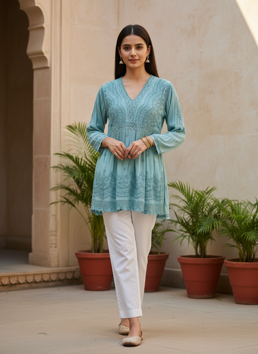 Beautiful Lucknowi Kurta size 40 Large. Hand Embroidered and skillfully stitched by the artisans in Lucknow India.
