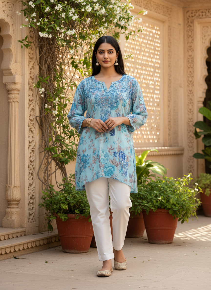 Beautiful Lucknowi Kurta size 50. Hand Embroidered and skillfully stitched by the artisans in Lucknow India.