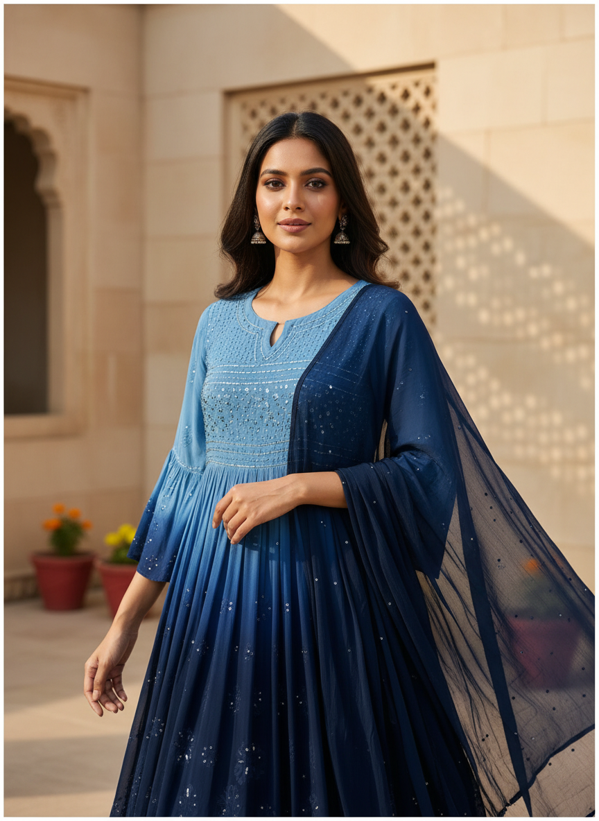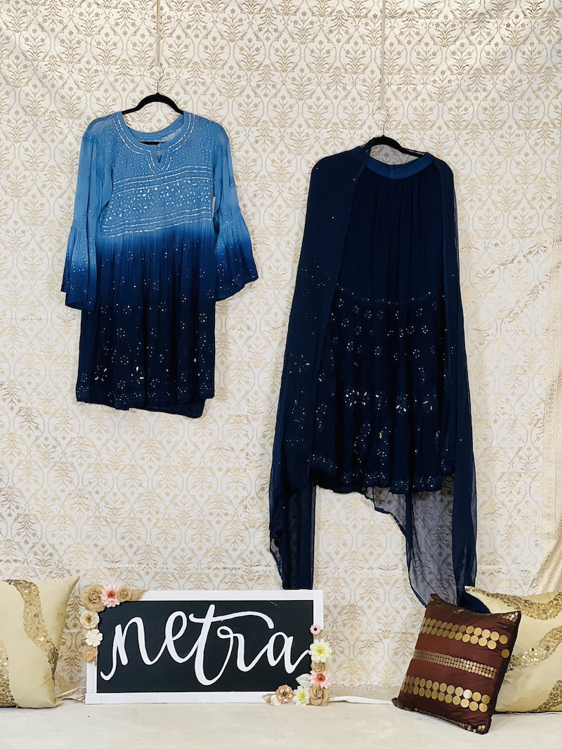 Beautiful Lucknowi Kurta Suit in georgette Size 40 Large. and embroidered and skillfully stitched by the artisans in Lucknow India.