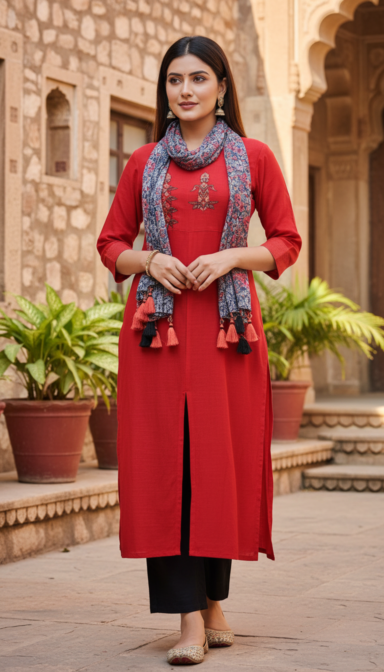 Beautiful Embroidered long tunic dress with printed stole Size 40 Large