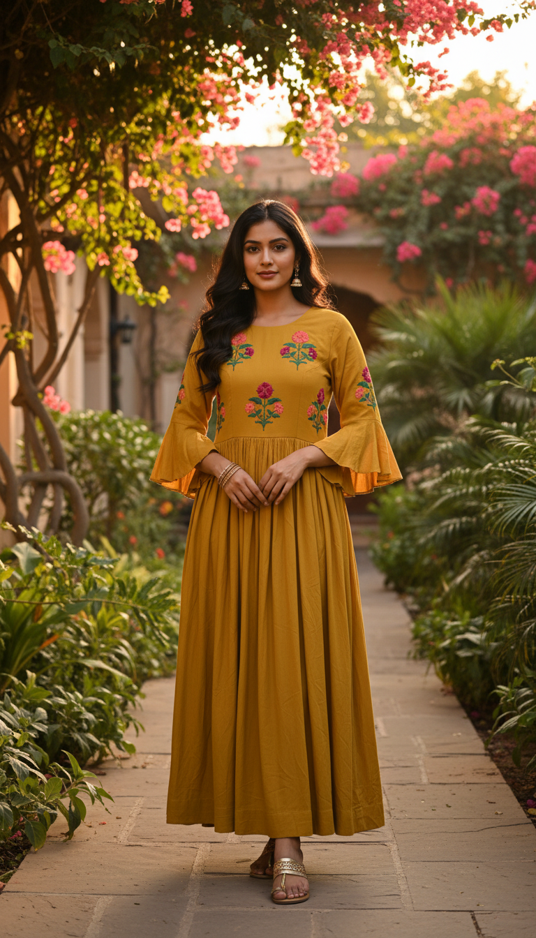 Beautiful machine embroidery work long maxi dress Size 40 Large