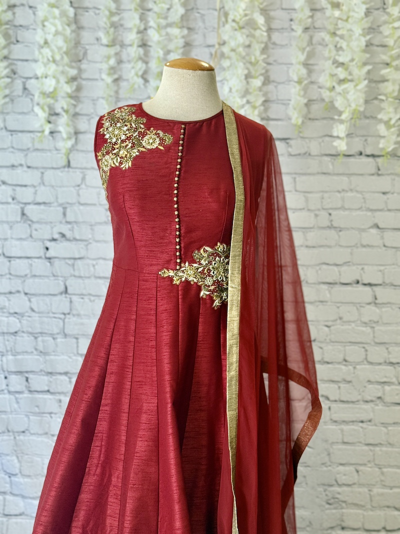Beautiful Maroon Silk Gown Size 38 Medium