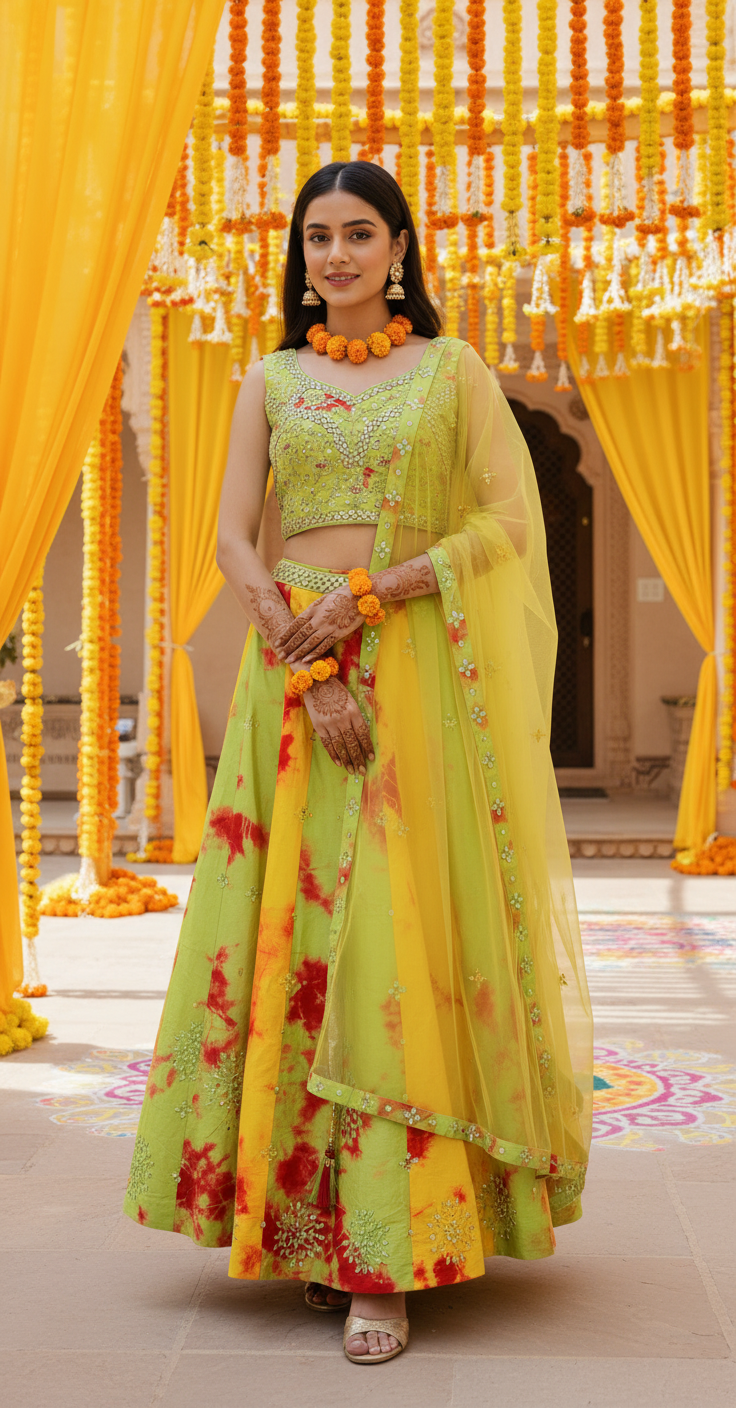 Lehenga Size: Medium Blouse Size: 38 with margin upto size 40″ .