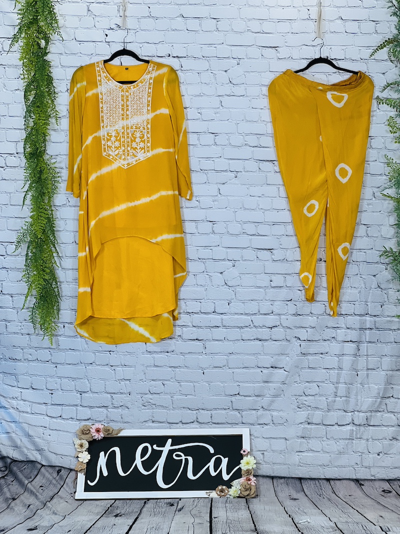 Embroidered Laheriya print Kurta Top and Dhoti suit Available Size 38
