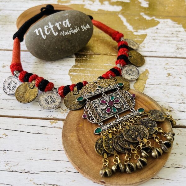 Beautiful Ethnic Oxidized German Silver pendant Necklace. Perfect to wear with your ethnic attires. Please see product description for additional details or feel free send us an email.