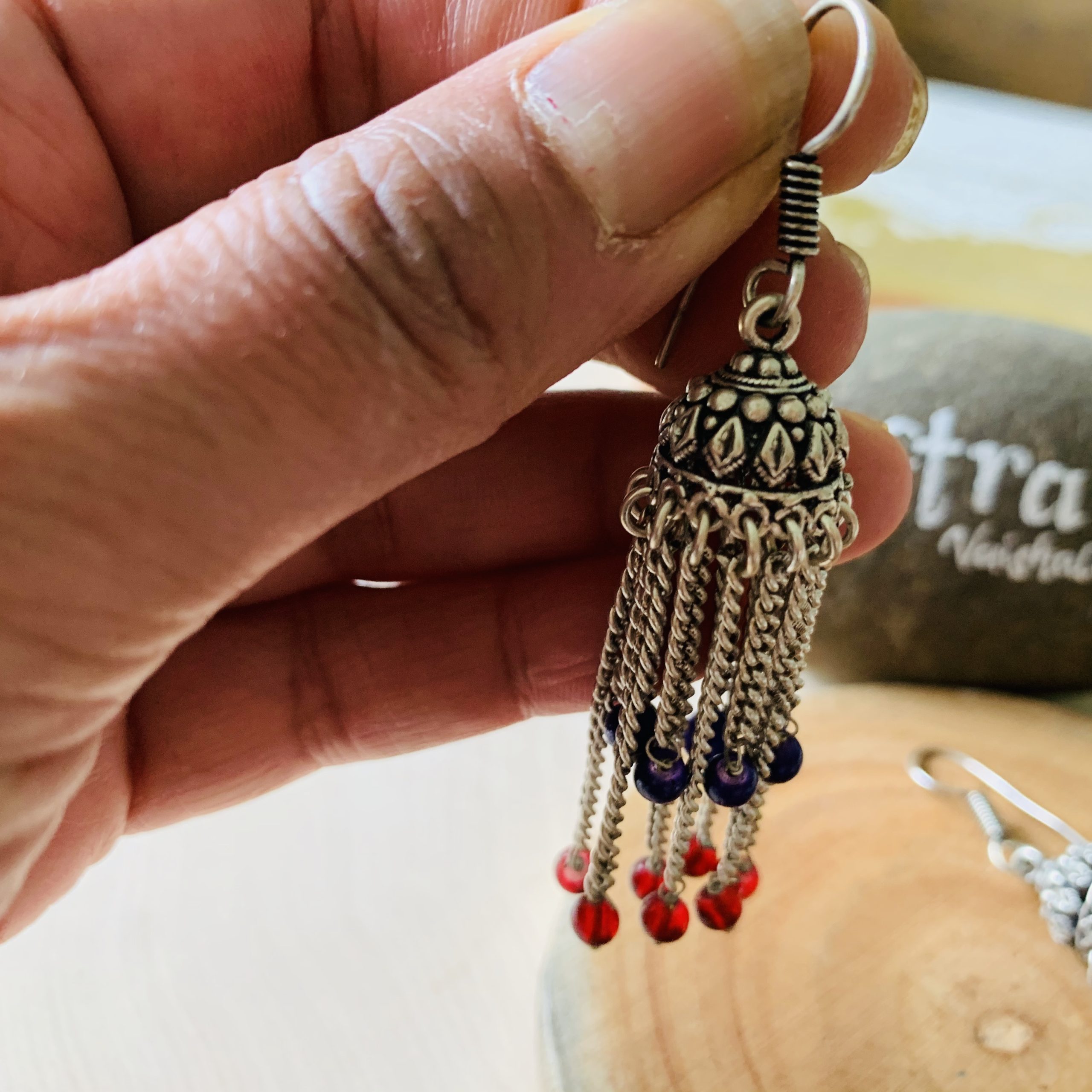 Beautiful ethnic Oxidized silver jhumki earrings. Perfect to wear with your ethnic attires. Please see product description for additional details or feel free send us an email.