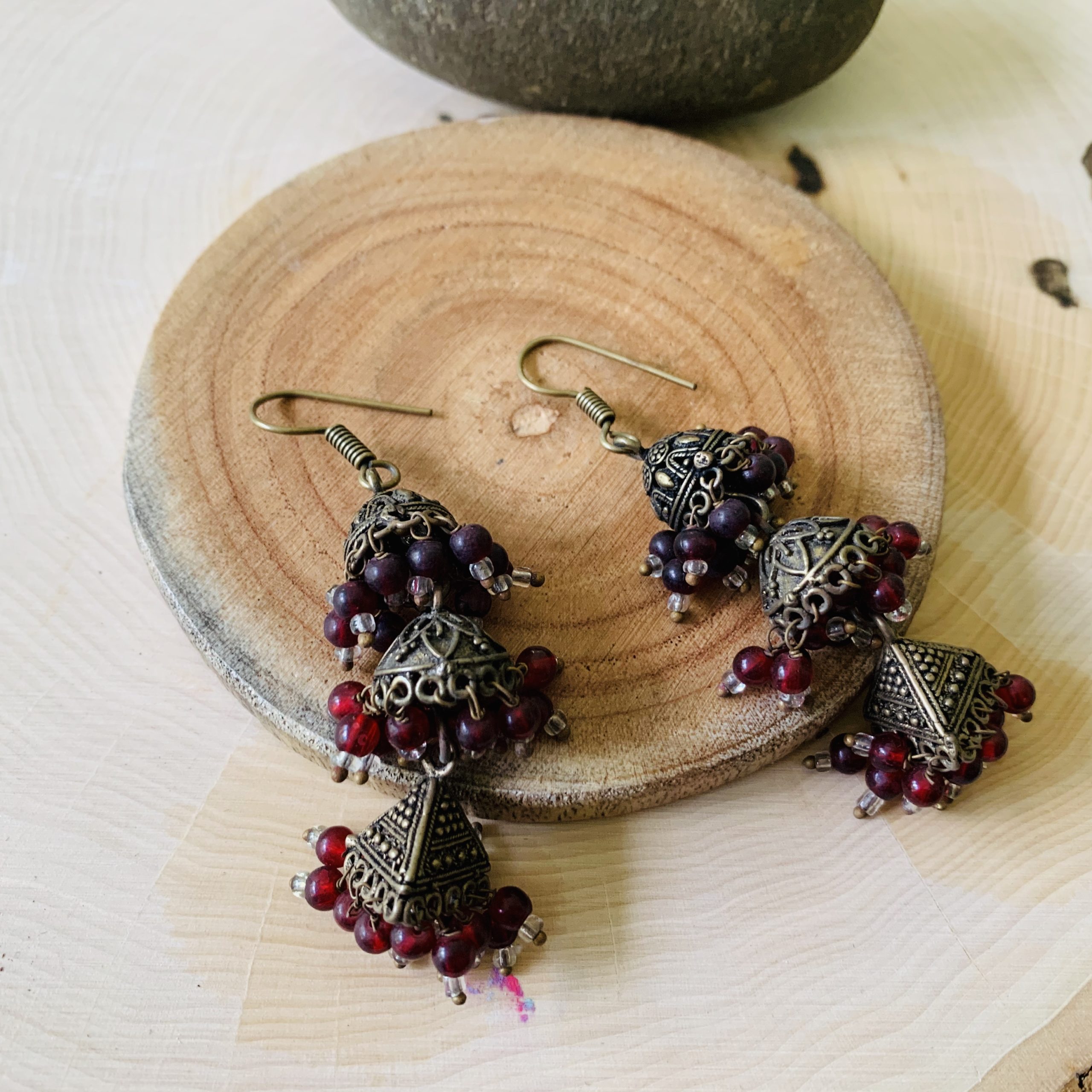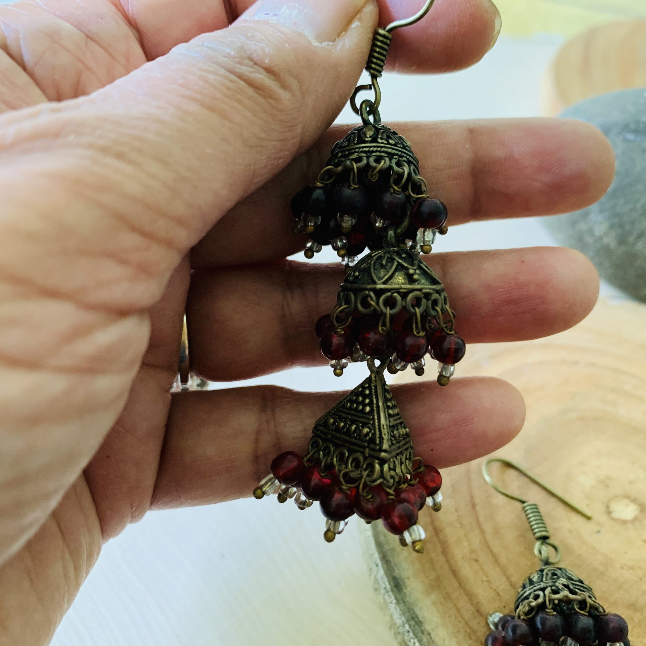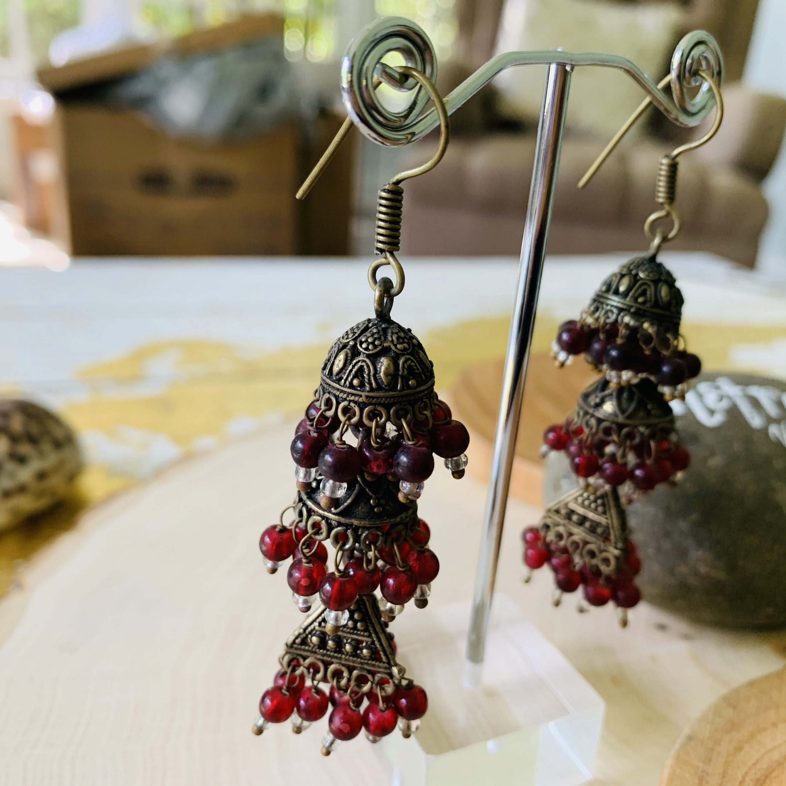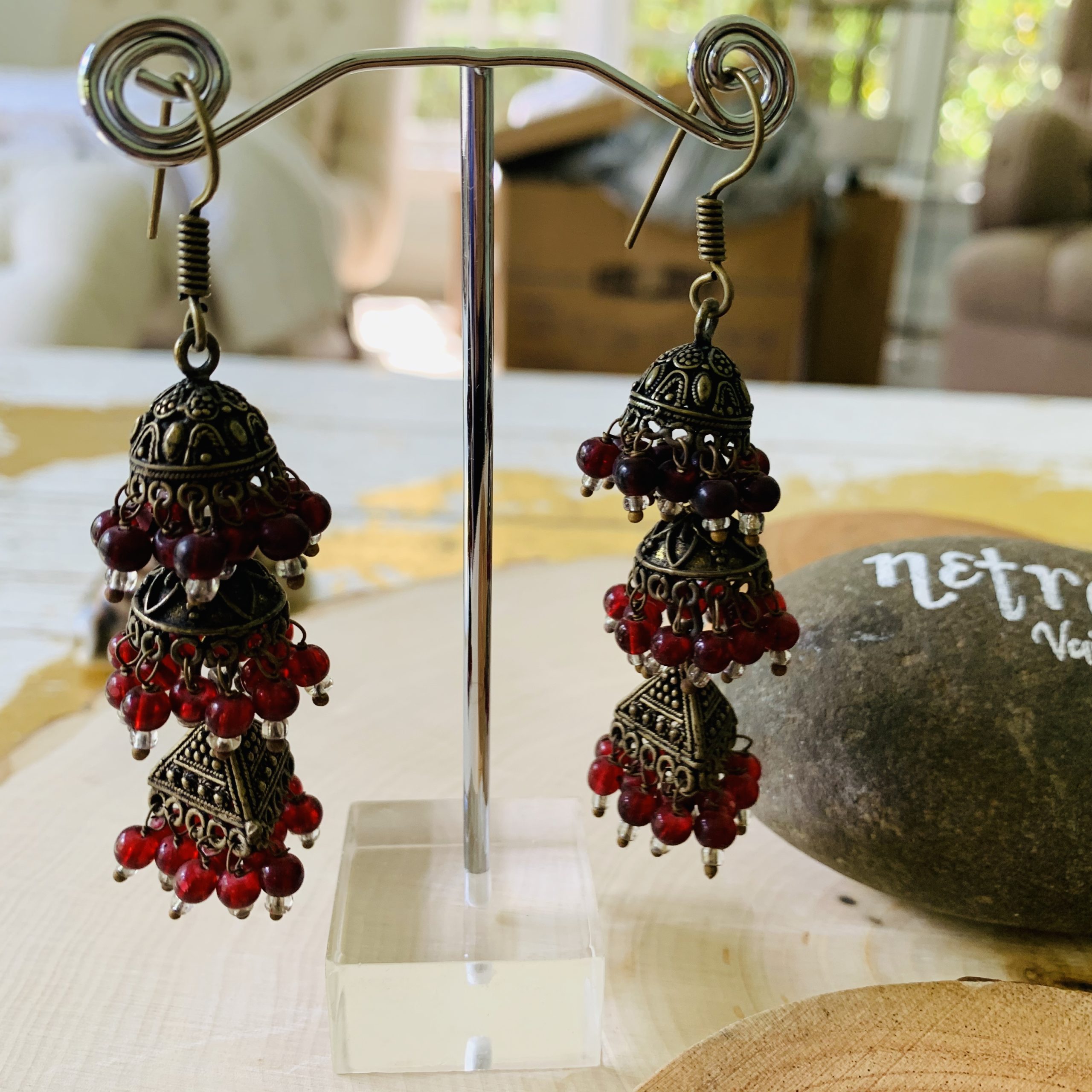 Beautiful ethnic Oxidized silver multi layer jhumki earrings . Perfect to wear with your ethnic attires. Please see product description for additional details or feel free send us an email.