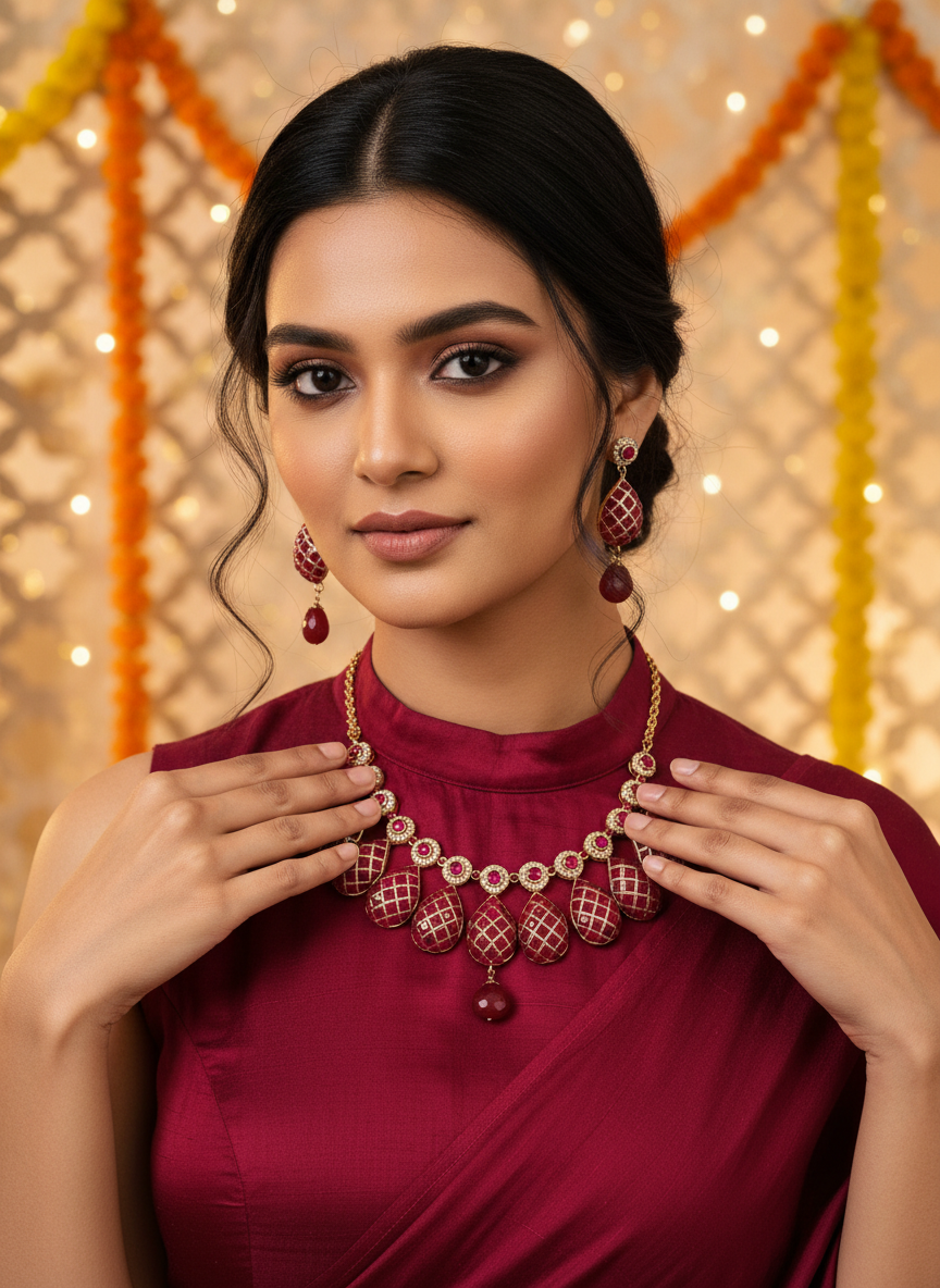 Ethnic Ruby stones necklace set