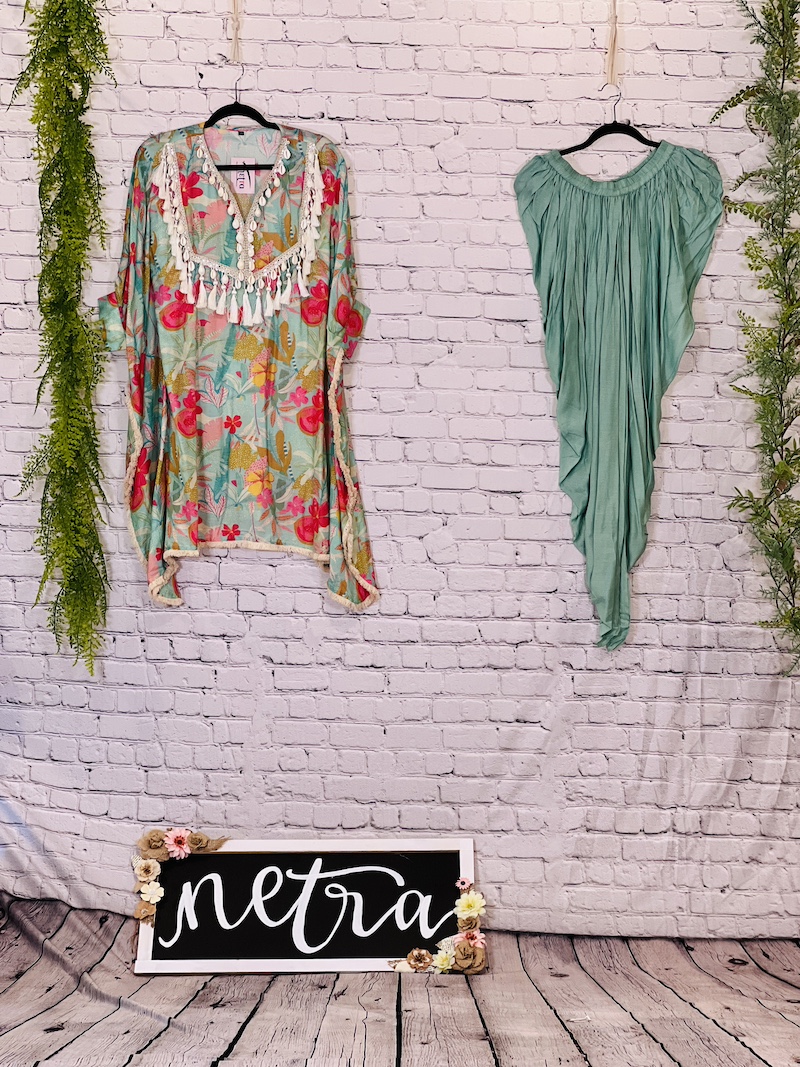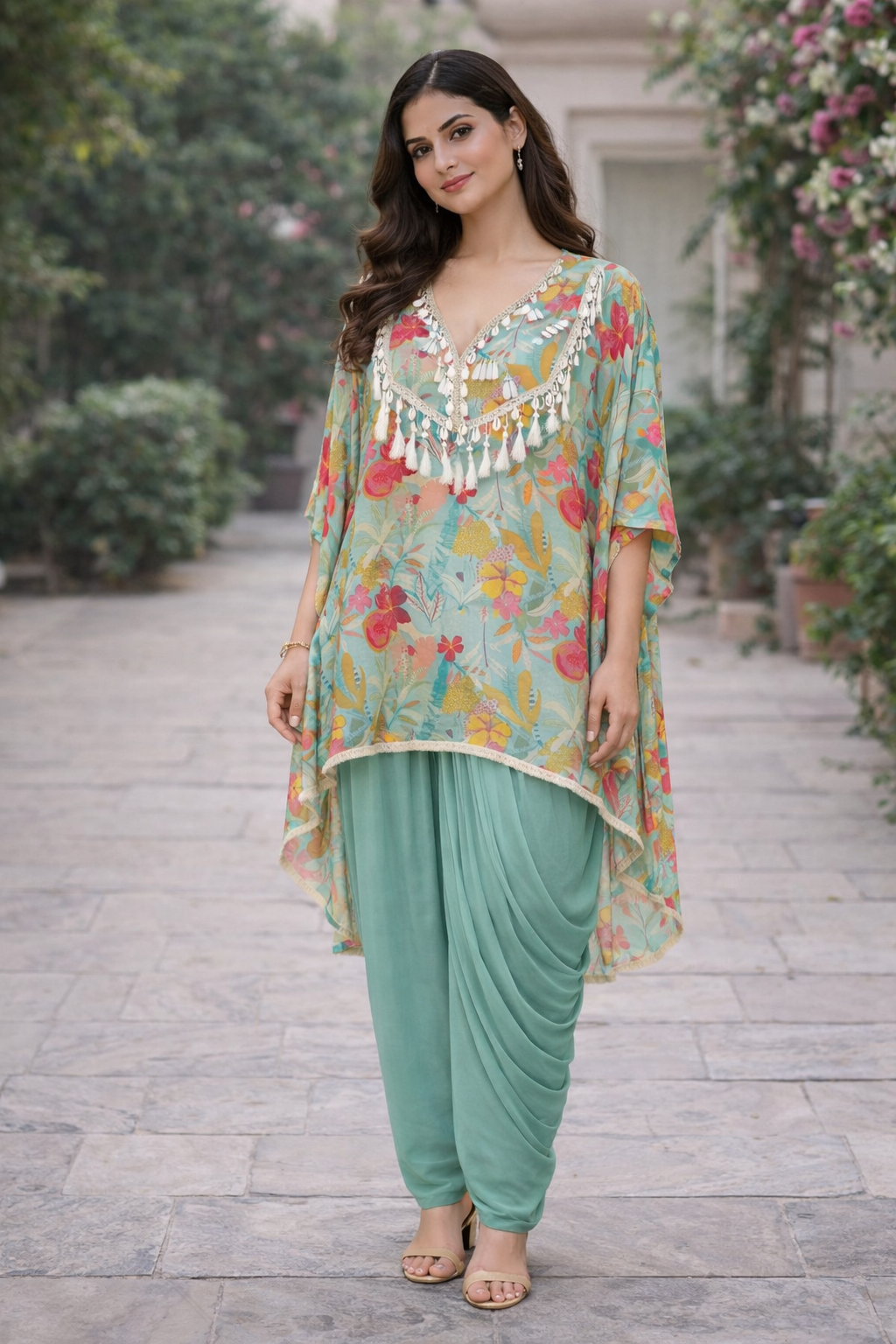 Floral print embroidered Kurta Top and Dhoti suit Available Size 38