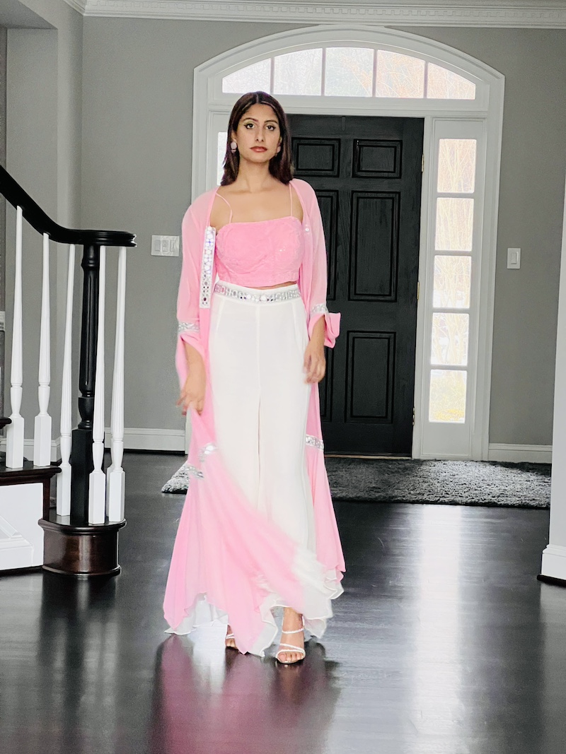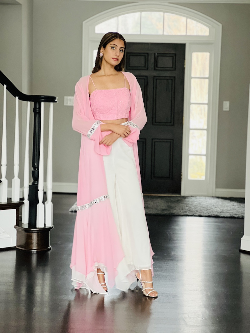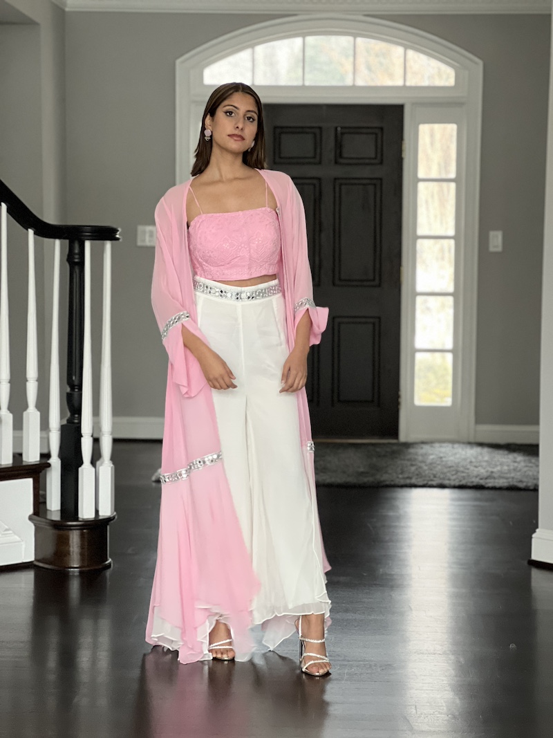 Component: Crop top, palazzo and Jacket