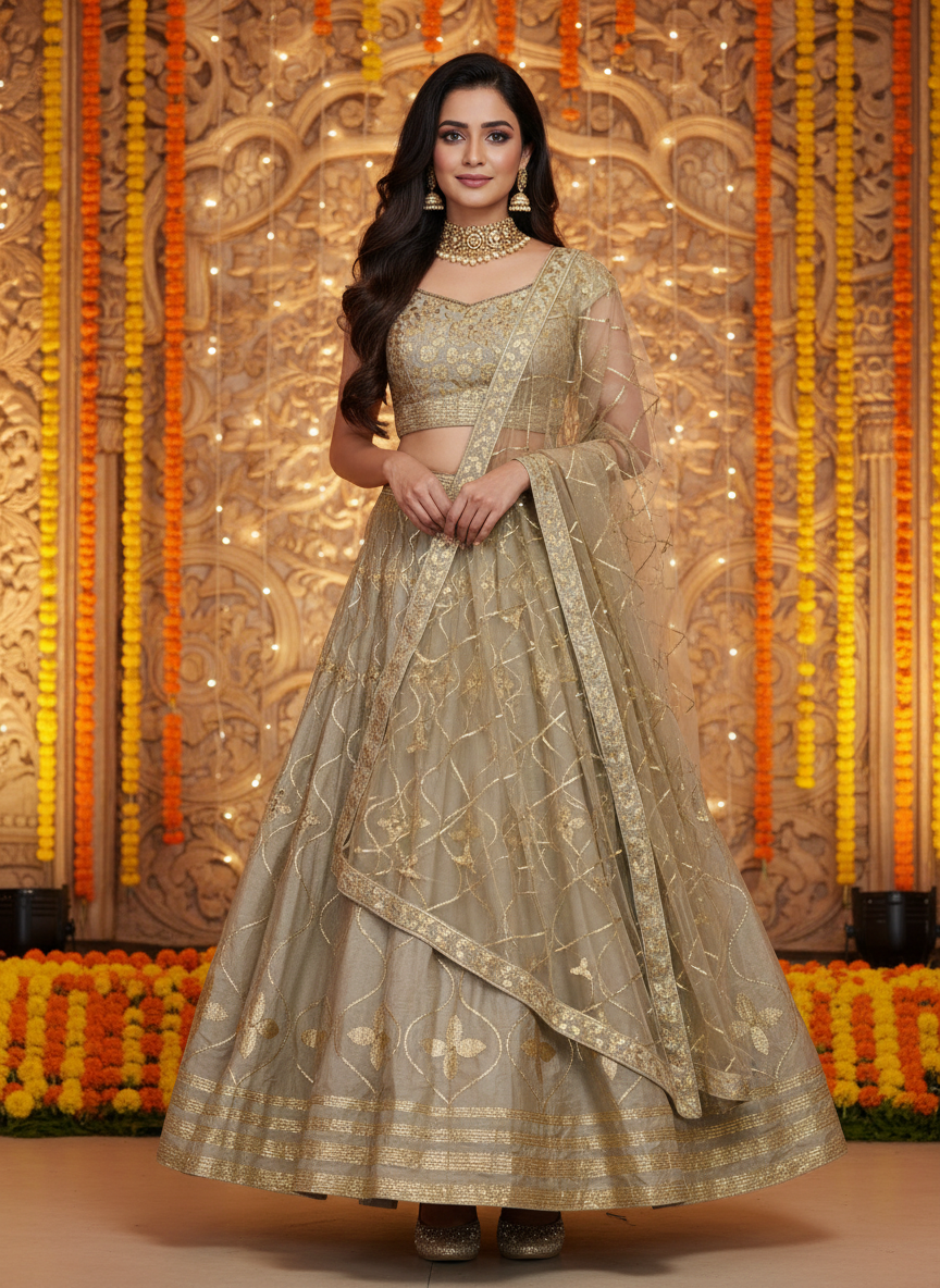 Gota embroidered silk lehenga with embroidered net dupatta Size 38-40