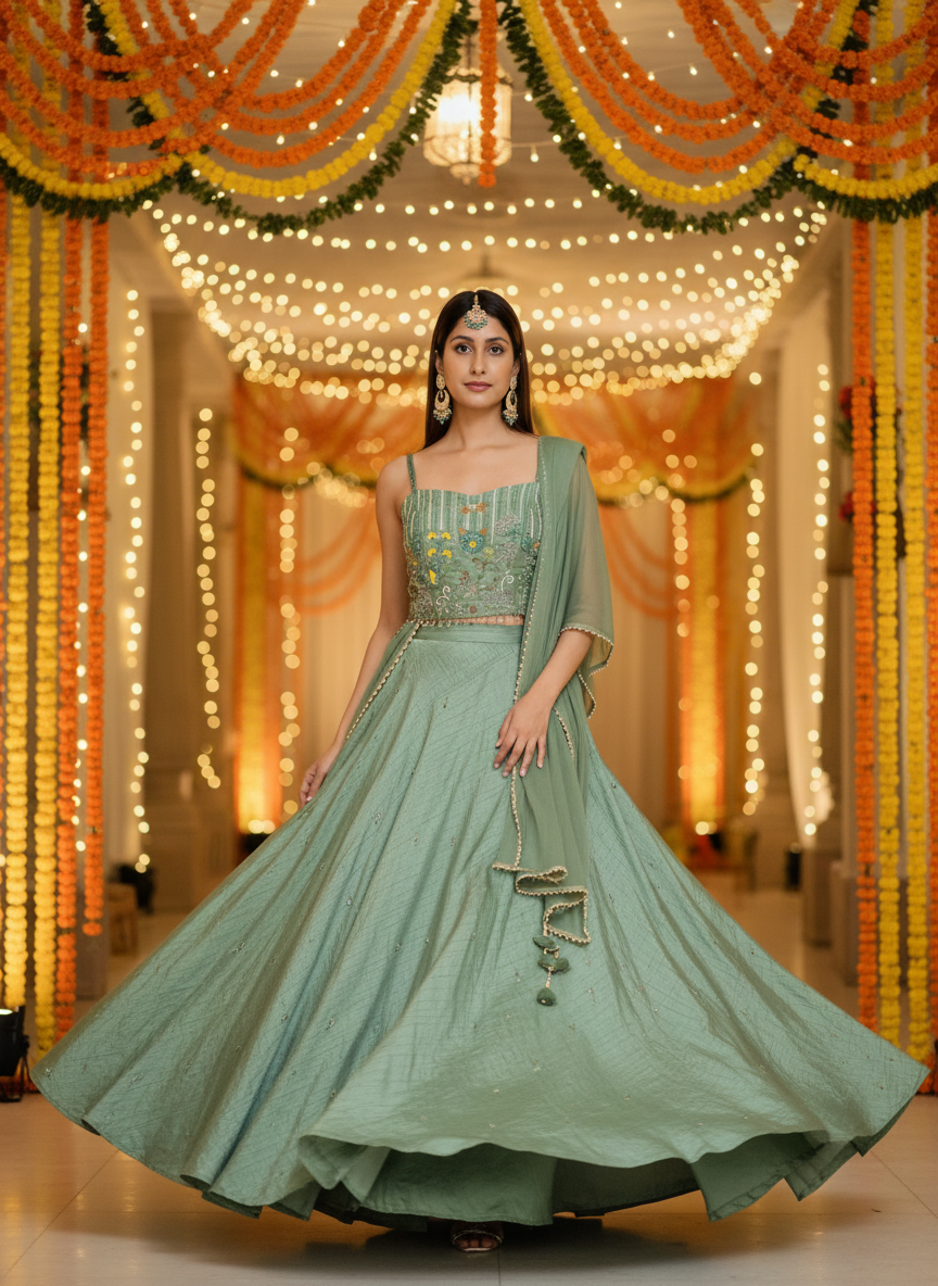 Hand embroidered bead work Lehenga Set Size 36-40