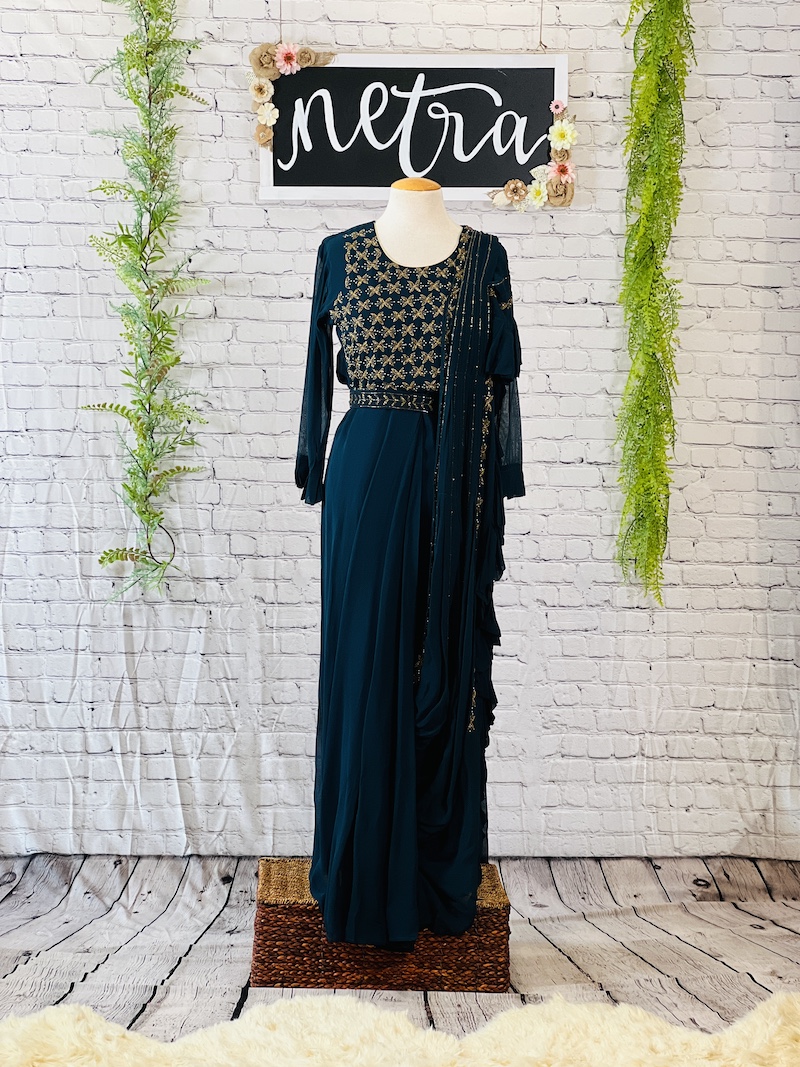 Hand Embroidered georgette drape gown Size 40