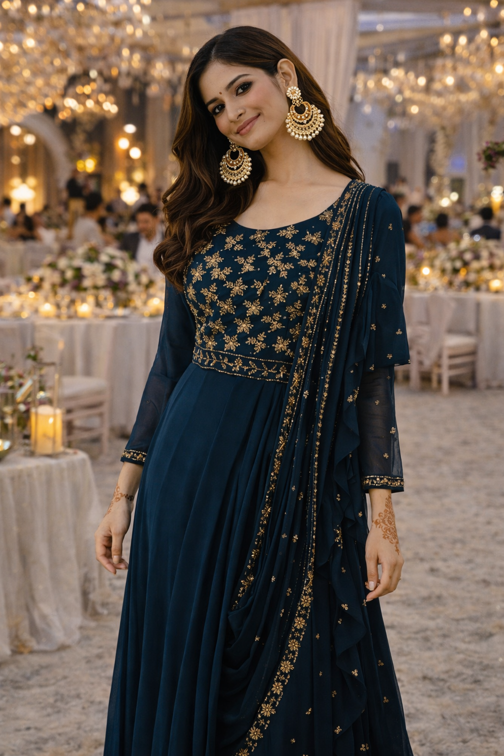 Hand Embroidered georgette drape gown Size 40