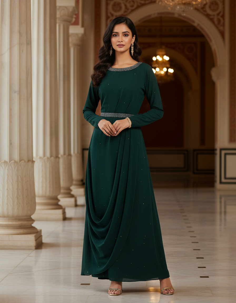 Hand Embroidered georgette gown drape Size 42