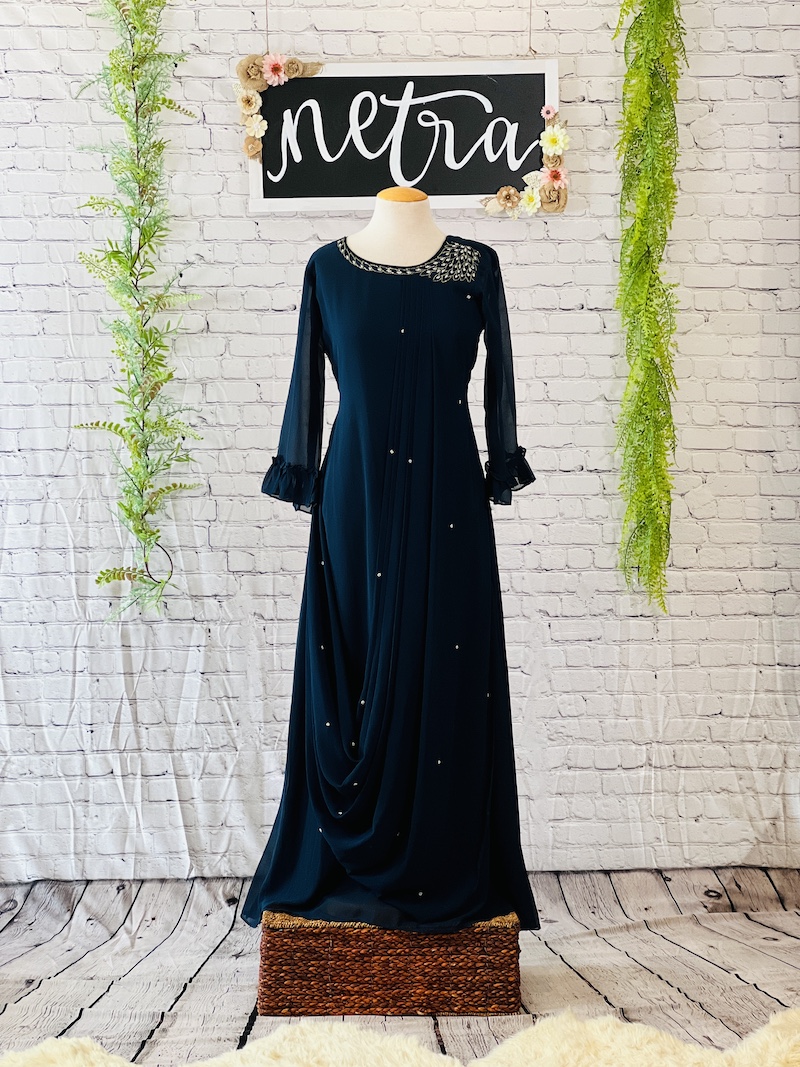 Hand Embroidered georgette gown Size 38