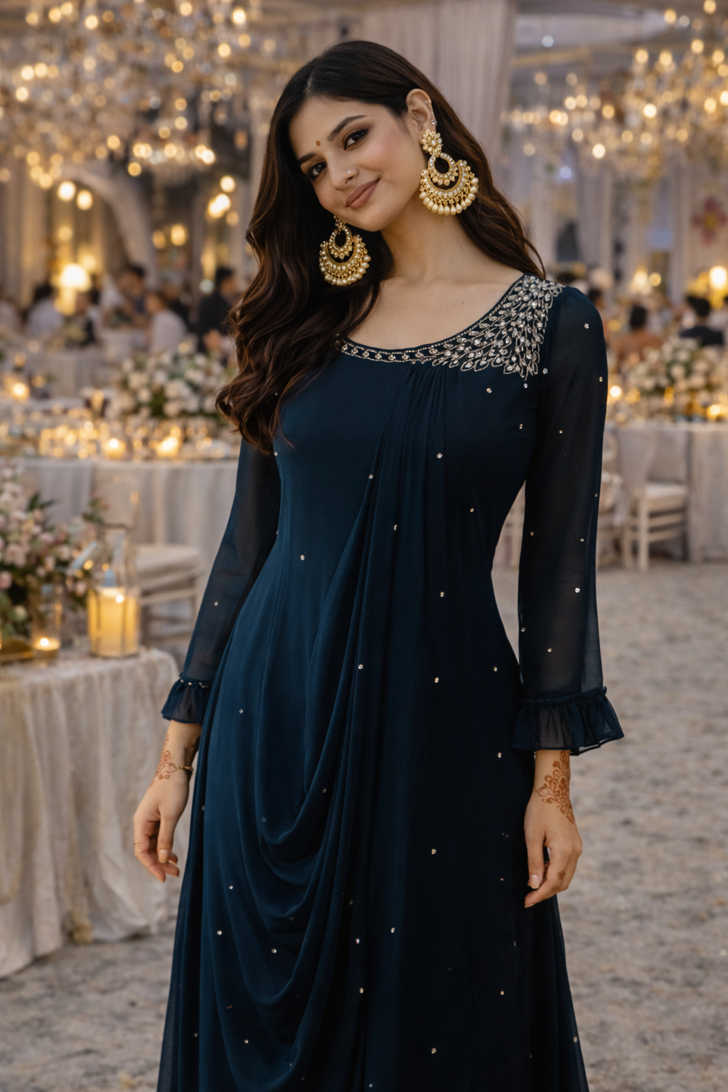 Hand Embroidered georgette gown Size 38