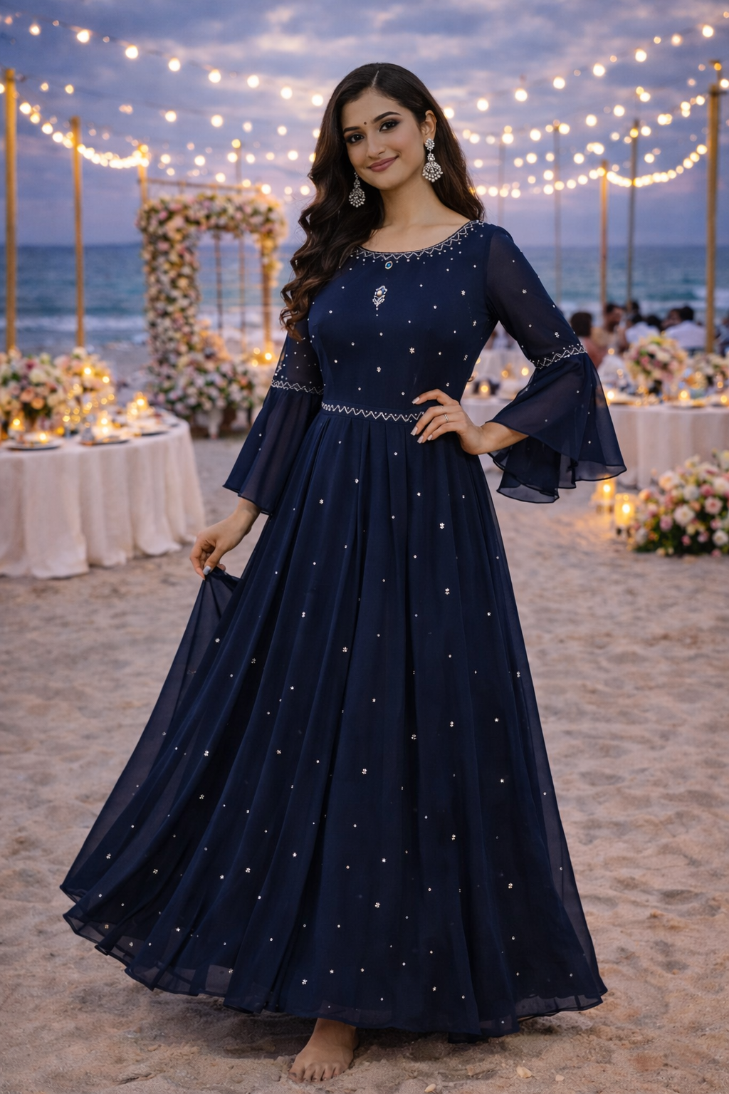 Hand Embroidered georgette gown Size 38