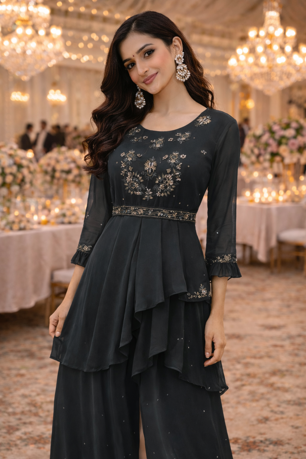 Hand Embroidered georgette sharara outfit Size 40