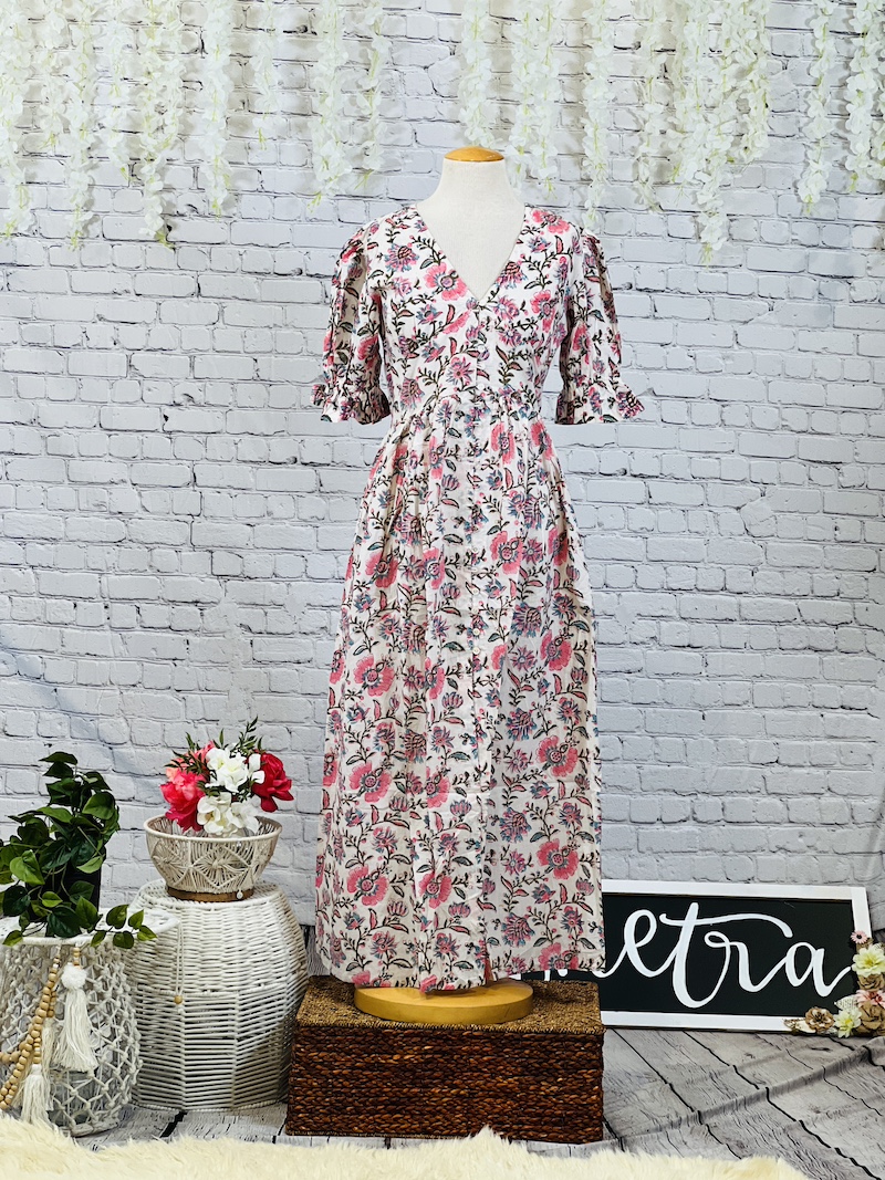 Mehreen – (महरीन – “Dewdrop”) Multi White and Pink Color Long Dress – Size 38 Medium