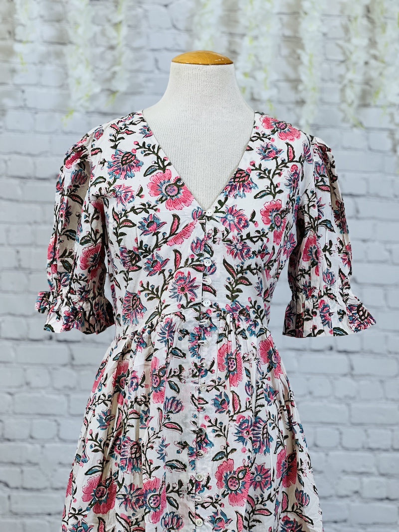 The Mehreen Dress is designed for a relaxed fit. If you prefer a more fitted style we recommend sizing down.