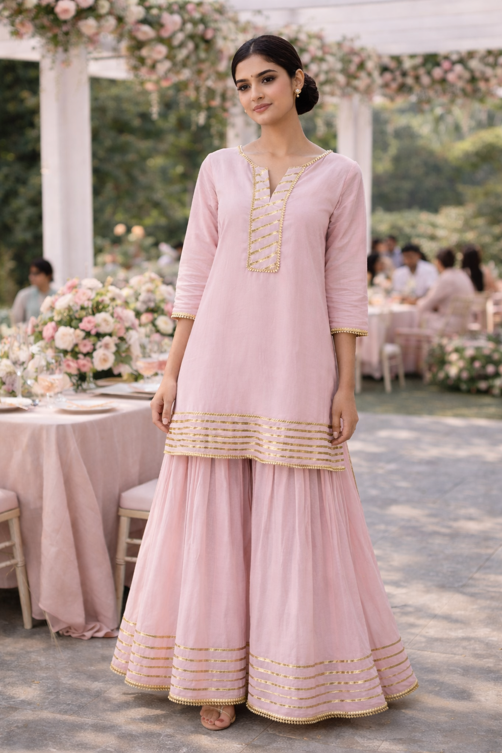Pastel pink gota work Kurta and sharara set Size 40 (L)
