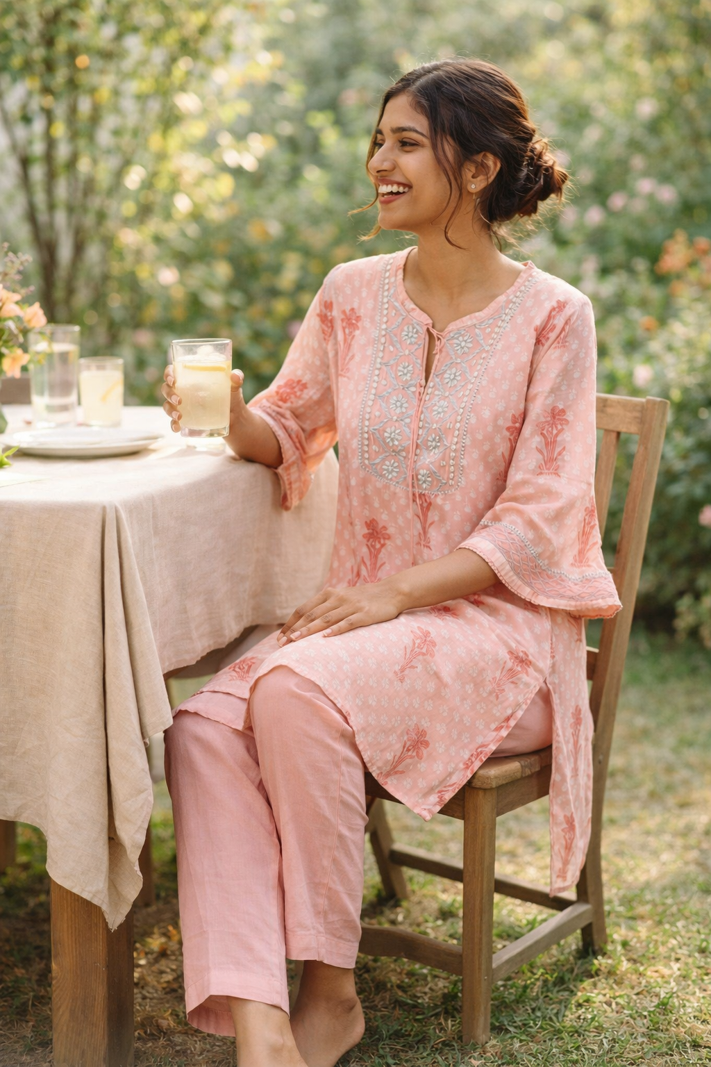 Printed Kurta set with gota embroidery details Size 42(XL)
