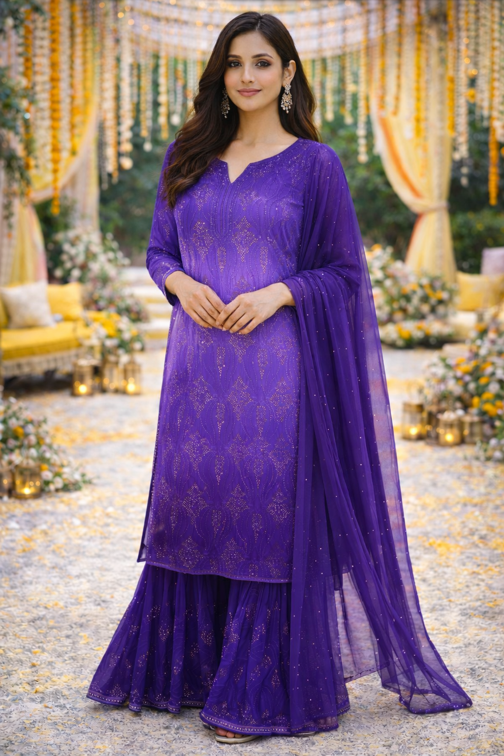 Pure Georgette Lucknowi Embroidery Gharara Suit Size 40 Large